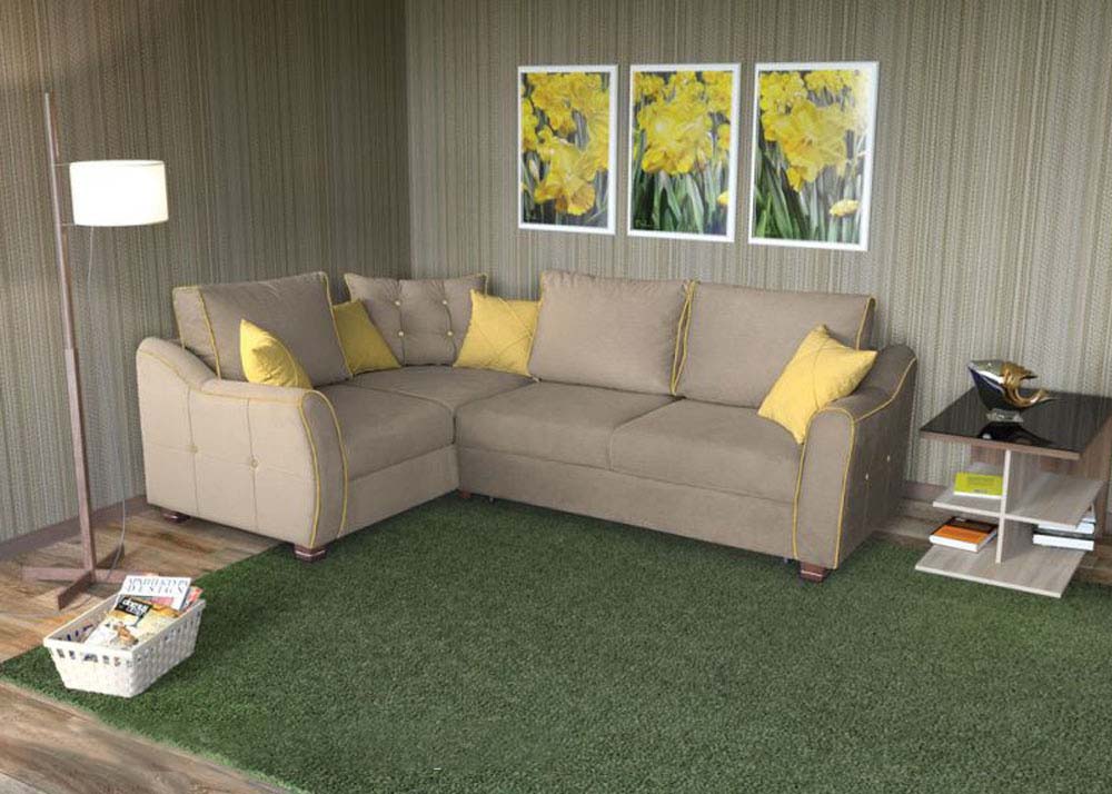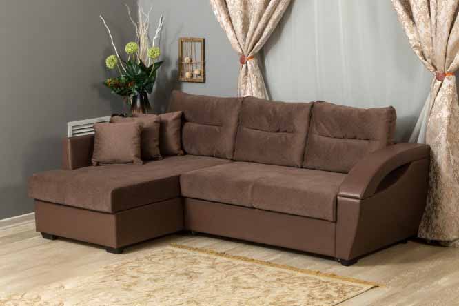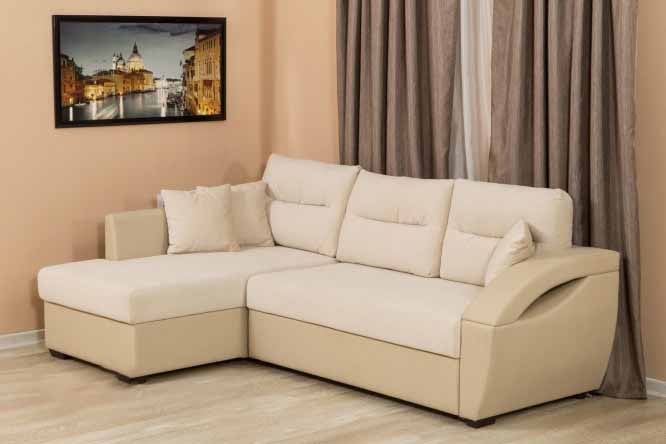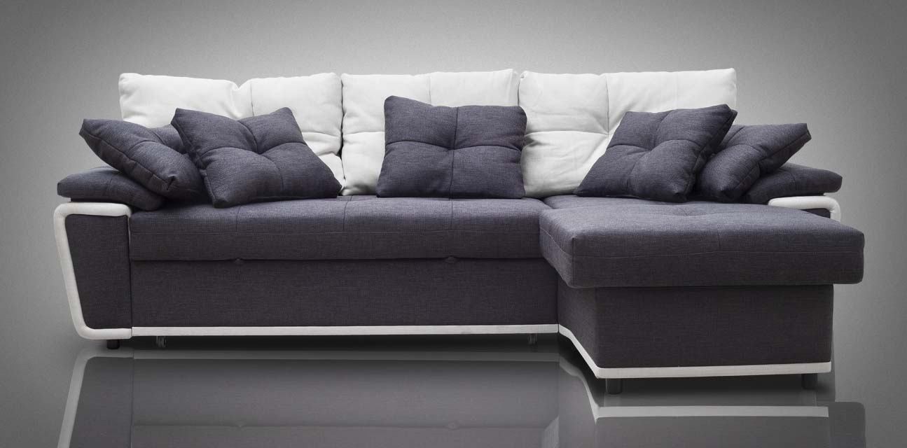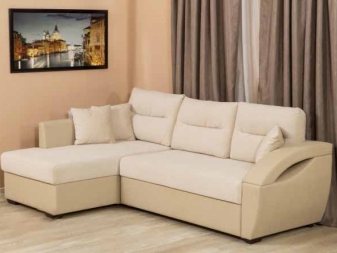 - "Philadelphia"- eine weitere interessante Variante des modernen Ecksofa mit einer Variante des Delfinmechanismus. Es hat einen universellen Winkel, Abmessungen 252x186x75 cm, ein aufgeklappter Liegeplatz für zwei Personen ist 210x135cm. Der Rahmen besteht aus Nadelholz in Kombination mit Sperrholz und Spanplatten. Der Füllstoff ist ein Polyurethanschaum, der durch Gießen hergestellt wird. Die Polsterung kann nach Wahl des Käufers aus Stoff, Kunstleder oder Kunstleder erfolgen. Es gibt eine Nische zum Aufbewahren von Bettwäsche. Eine interessante Designidee, die dem Sofa "Philadelphia" Individualität verleiht, ist das Dekor von Kant und Knöpfen auf den Kissen. Die Kosten für ein solches Sofa betragen 31 270 p.