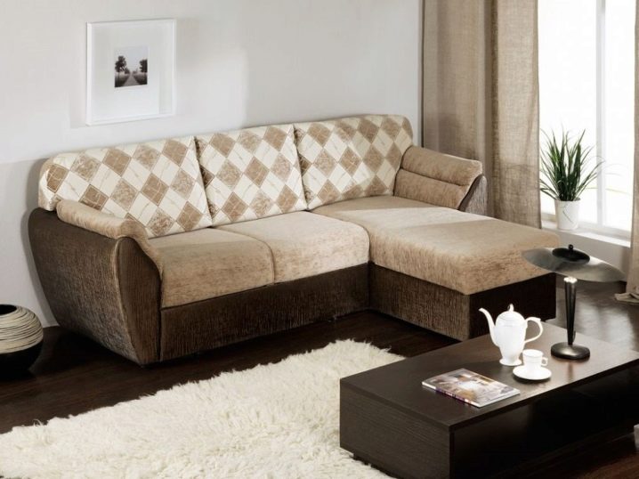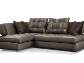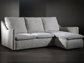 Auch in der Produktion von Ecksofas kann federlose Art der Füllung verwendet werden, die zusätzliche Steifigkeit bietet. An der Basis eines solchen Sitzes ist Sperrholz, auf das Polyurethanschaum gelegt ist, der eine erhöhte Dichte aufweist.