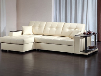 Derzeit sind die Kosten für Ledermöbel noch immer hoch, daher gehören diese Sofas zur Luxuskategorie. Auf dem Markt findet man jedoch die sogenannten Hybrid-Modelle, bei denen nur die vorderen Teile der Polsterung aus diesem teuren Material bestehen: der Sitz, die äußere Oberfläche der Rückenlehne, die Oberseite der Armlehnen. Der Rest der Oberflächen ist in solchen Modifikationen mit Kunstleder oder Öko-Leder in passendem Farbton ummantelt, so dass selbst bei genauer Betrachtung die Unterschiede kaum erkennbar sind.