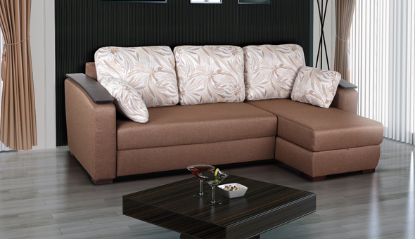 - Ein interessantes Design hat ein kleines gerades Sofa mit Roll-out-Mechanismus der Transformation, die genannt wird "Darcy". Die Maße des Sofas betragen 200x112 cm. Der Liegeplatz ist 200x160 cm. Seine Rückseite, die aus zwei Teilen besteht, ist mit einer unabhängigen Einstellung des Neigungswinkels ausgestattet und kann zu bequemen Kopfstützen werden, wenn man den Liegeplatz auslegt. Der Rahmen des Sofas "Darcy" besteht aus einer Kombination von Hartholz, Weichholz, Sperrholz und Faserplatten. Polyurethan-Schaum wird verwendet, um die Sitze zu füllen, Hollow Fiber wird für Kissen verwendet. Ein großer Vorteil des Designs ist die flexible Basis des Sitzes, die in Form eines Gitters aus orthopädischen Lats hergestellt wird. Sie sind am Rahmen montiert und ermöglichen Ihnen die optimale Elastizität für einen Liegeplatz.Die Polsterung kann aus zwölf Stoffarten ausgewählt werden, deren Kosten vom Endpreis des Sofas abhängen. Die ungefähren Kosten betragen 22 500 p.