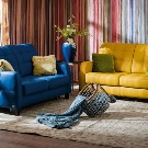 Gelbe Sofa Farbe sieht gut aus mit grau, blau, grün und lila. Gelbe Farbe erfüllt den Raum mit Freude.