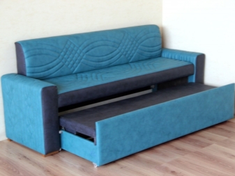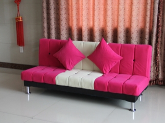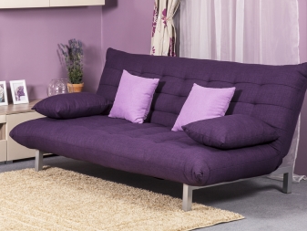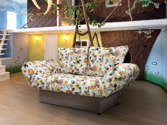 Um ein solches Sofa zu erweitern, senken Sie einfach die Armlehnen ab. Sie können nach Ihren Wünschen angepasst werden. Der Vorteil eines solchen Modells ist Einfachheit und Kompaktheit. Praktischerweise nimmt das Sofa, wenn es entfaltet ist, fast keinen zusätzlichen Platz ein. Solche Sofas befinden sich oft in Kinder- und Jugendzimmern, da sie einfach zu verlegen und leicht zu reinigen sind.