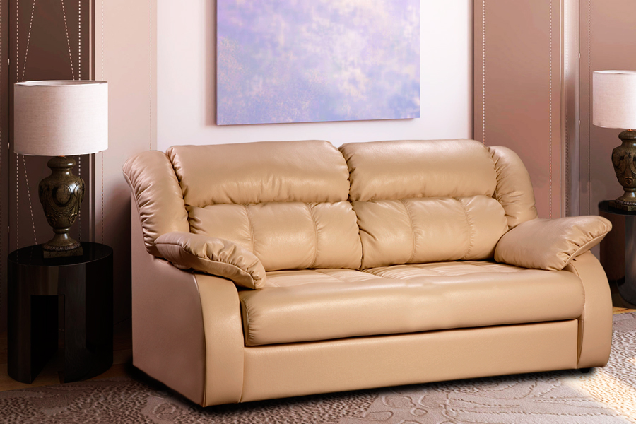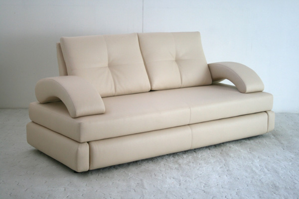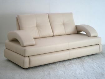 Das strenge Design und die Polsterung aus echtem Leder machen dieses Modell ideal für eine persönliche Konto- oder Bürofläche. Die Kälte des Sofas gleicht jedoch eine bequeme orthopädische Matratze und hochwertige Materialien aus. Der Mechanismus "Buch" wird nicht erlauben, dieses Möbelstück nahe an der Wand zu stellen, so ist es besser, es für geräumige Zimmer zu wählen.