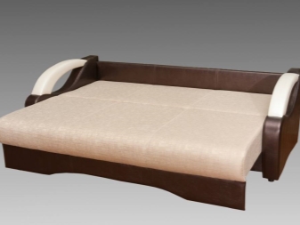 Um ein Bett zu organisieren, müssen Sie den Sitzplatz erhöhen. Dann nimmt der Rücken eine horizontale Position ein.Dies ist ein sehr zuverlässiger Mechanismus, der viele Jahre lang dienen wird, aber er erfordert einen gewissen Aufwand, wenn er aktiviert wird. Zusätzlich kann die Verbindung zwischen dem Sitz und dem Rücken, die sich in der Mitte befindet, Unannehmlichkeiten verursachen.