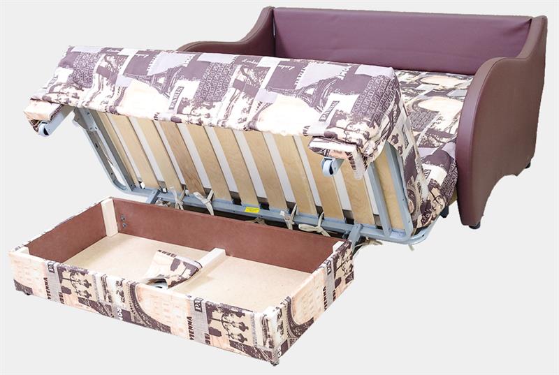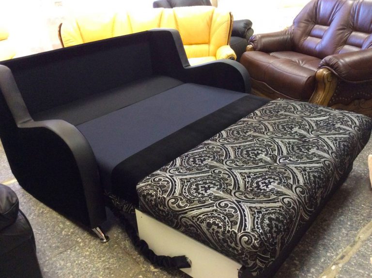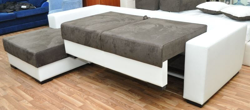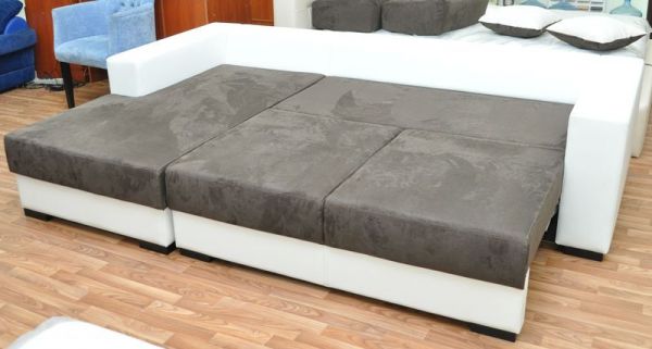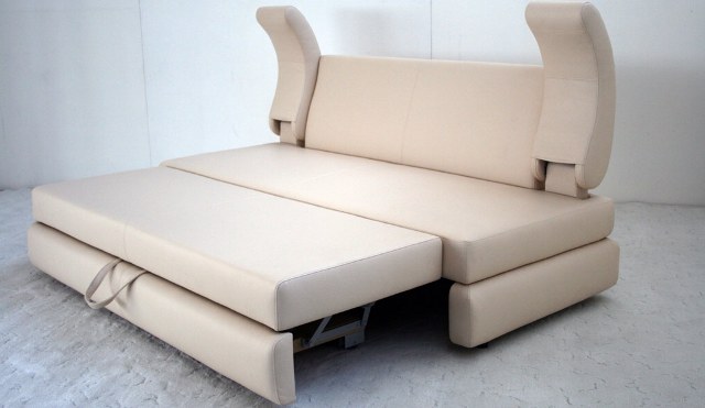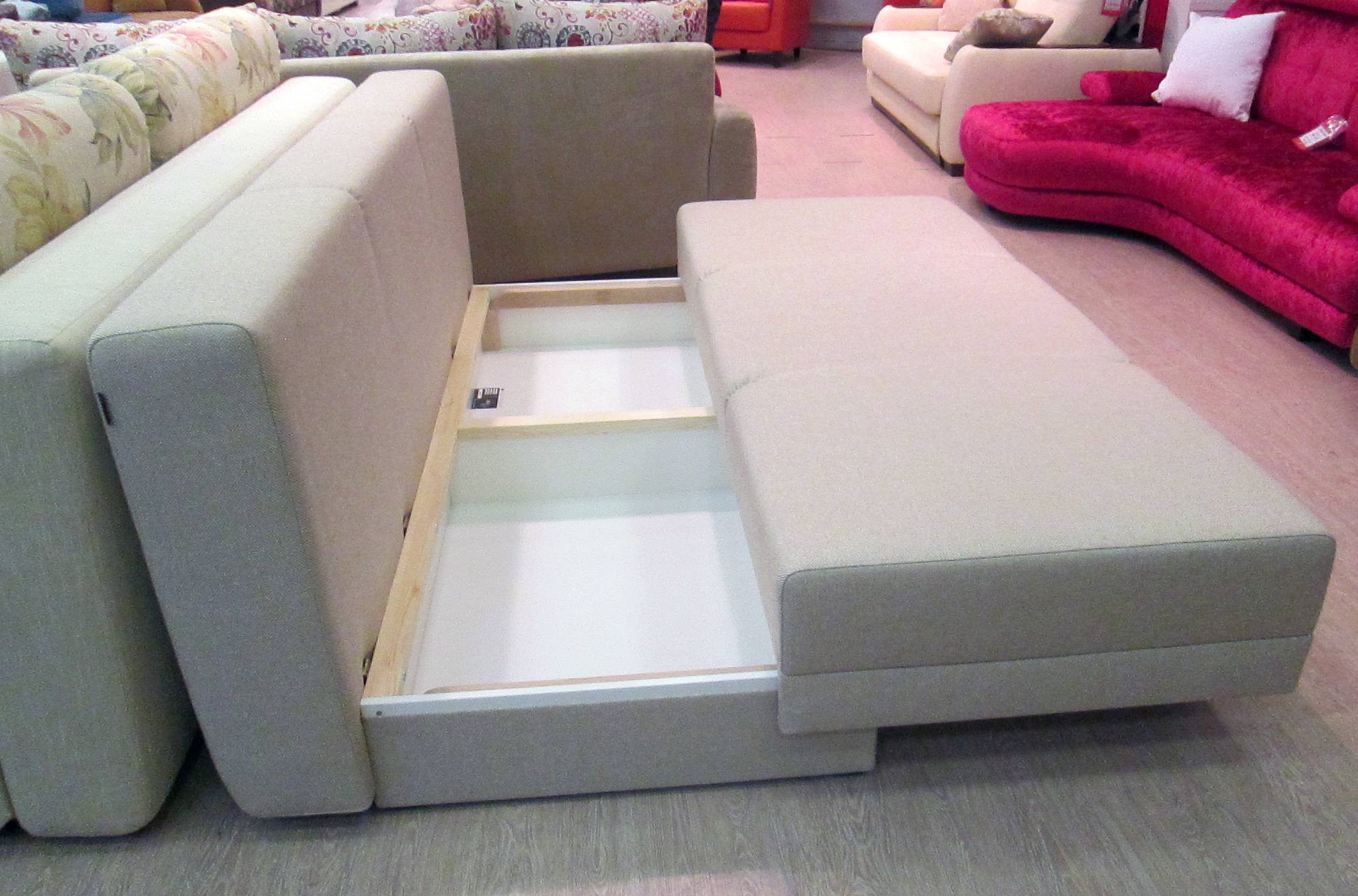 Dies ist ein fortgeschrittenes Modell. Das Bett ist unter dem Sitz, du musst es herausziehen und dann erweitern. Nur zwei Abschnitte sind ausgelegt, so dass das Design bruchfester und für jeden Tag geeignet ist. Die Matratze ist sehr komfortabel.