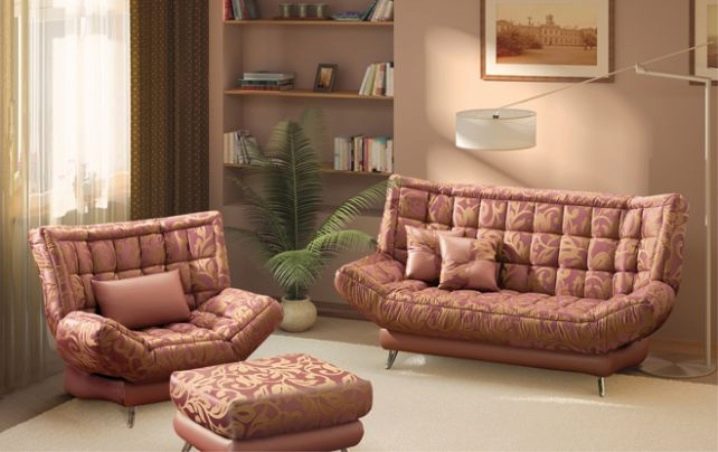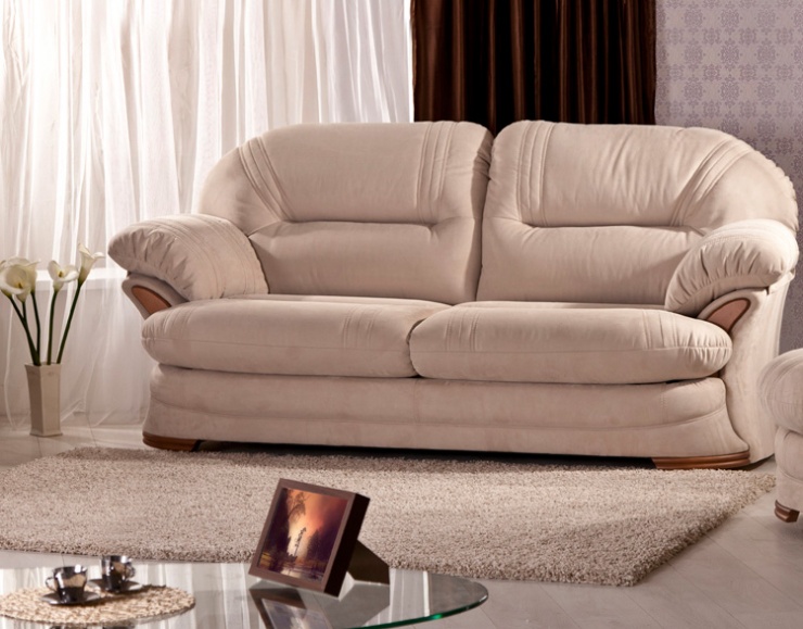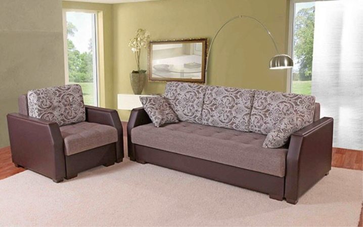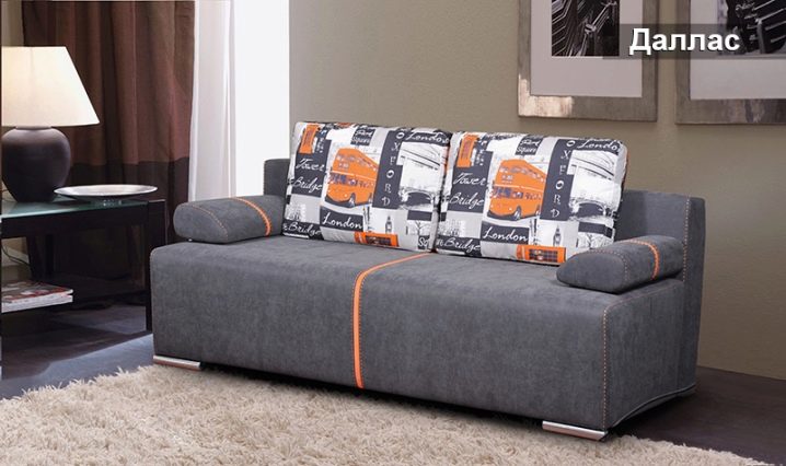 Der Mechanismus "Puma" erfordert keine praktischen Anstrengungen beim Entfalten. Funktionelle Armlehnen, Tische ermöglichen es Ihnen, dieses Sofa zu den Optionen für das Wohnzimmer zu tragen. Dies ist ein sehr stilvolles Möbelstück. Neben den prächtigen Stoffbezügen, die bei verschiedenen Beleuchtungsarten vorteilhaft sind, stehen drei Kissen zur Auswahl. Der Gesamteindruck des Interieurs hängt von der Farbgestaltung ab.