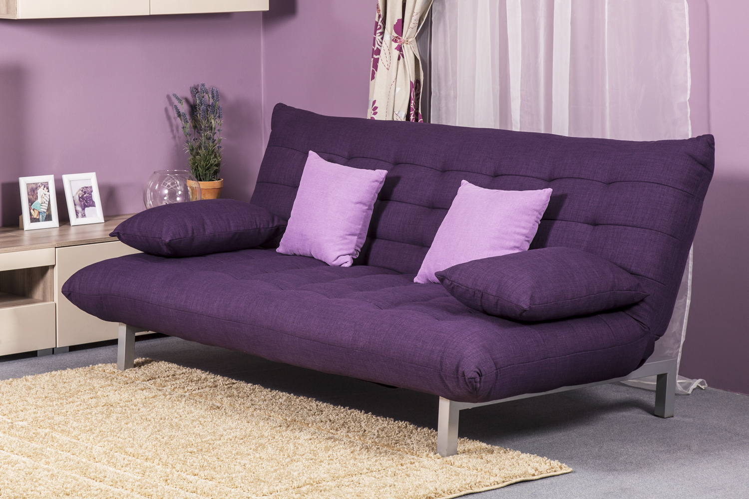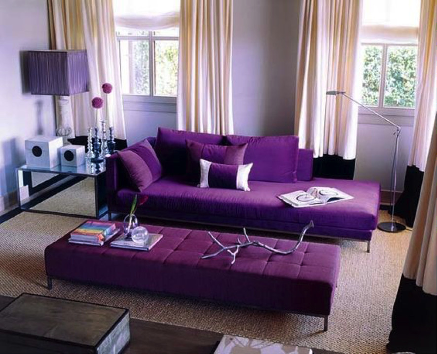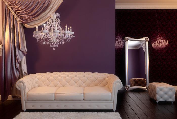Ein lila Sofa wird in einem lila, orange, beige, Lavendel oder grauen Interieur gut aussehen. Purpur ist die Farbe von Luxus und Reichtum.