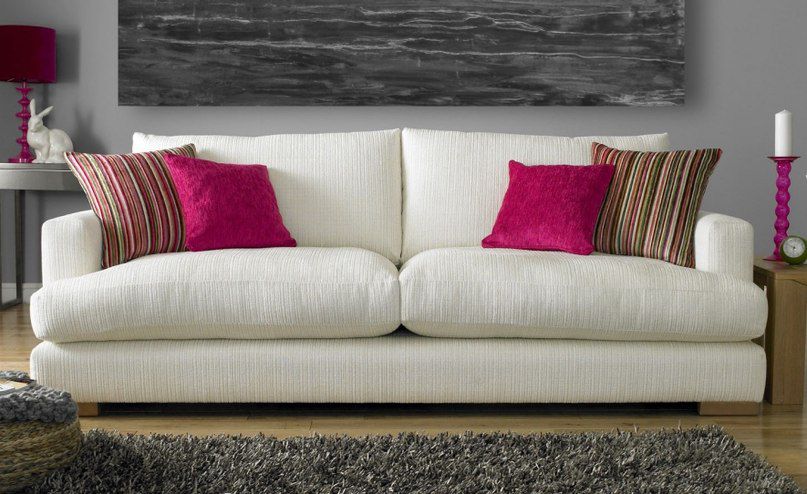 - Helle Wände, neutrales Sofa. Um die Farbe der Wände zu betonen, wird ein Möbelstück mit einer kontrastierenden, aber neutralen Farbe ausgewählt. Ein weißes Sofa ist immer geeignet.Ein solcher Designer-Fund ist sehr stilvoll und schützt den Raum vor einer Überfrachtung mit Farbe.
