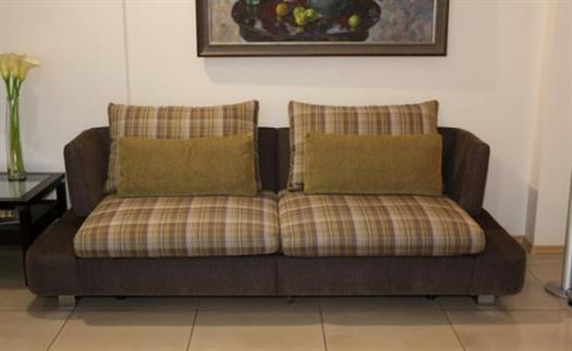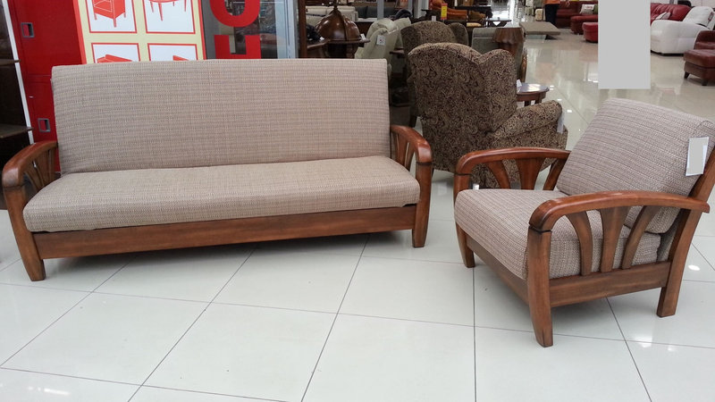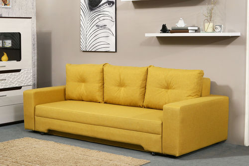 Bequemes Sofa mit einem tiefen Sitz. In der ungefalteten Form ist in der Lage, eineinhalb Betten zu bieten. Der Vorteil sind die Armlehnen aus Holz, deren Farbe variiert. Die Wäschebox ist nicht vorhanden.