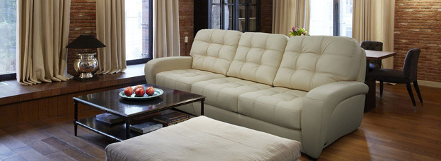 Ledersofas sind in der Farbe begrenzt, meistens sind sie fest. Sie eignen sich für eine begrenzte Linie von Interieurs, zum Beispiel im orientalischen Stil. Viele haben sie auch in Büros und an der Rezeption.