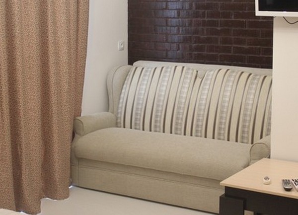 Das Sofa mit Liegefläche passt organisch ins Wohnzimmer. Es ist ideal für Apartments mit einem Schlafzimmer und Studio-Apartments. Wenn das Sofa richtig positioniert ist, wird es nicht nur seine unmittelbare Funktion erfüllen - um ein Ort des Schlafes und der Ruhe zu sein, sondern auch um an der Raumzonierung teilzunehmen. Dieses Möbel trennt den Wohnbereich vom Nichtwohnbereich, wenn Sie ihn in die Küche zurückdrehen. Dann brauchen Sie keinen Bildschirm oder andere Partitionen.