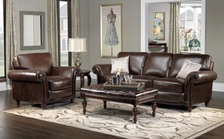 Leder ist die zweitwichtigste Polsterungsoption. In unserem Land ist dies eine Möglichkeit, Ihren Status zu betonen, das Ledersofa im Wohnzimmer sieht sehr extravagant aus.