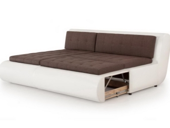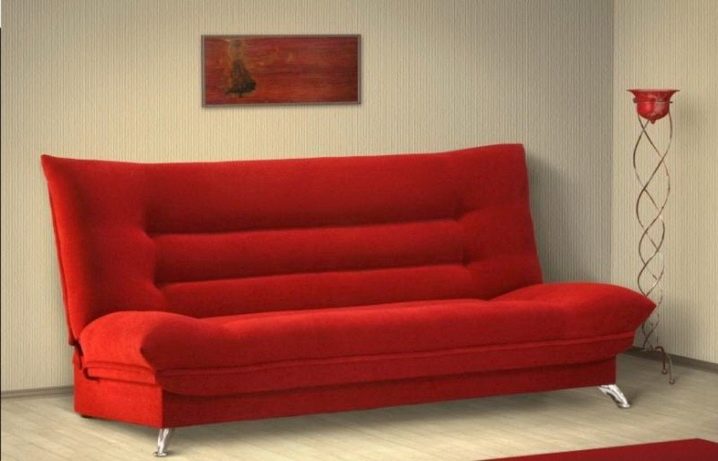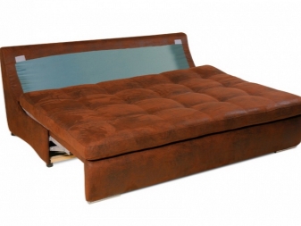 Das ausklappbare Sofa öffnet und entfaltet sich sehr leicht. Dank moderner Mechanismen muss man sich keine Sorgen machen, dass häufige Manipulationen mit einem weichen Produkt zum Auftreten von Defekten beitragen können. Moderne Sofas ohne Seitenwände werden auf folgende Arten angezeigt:
