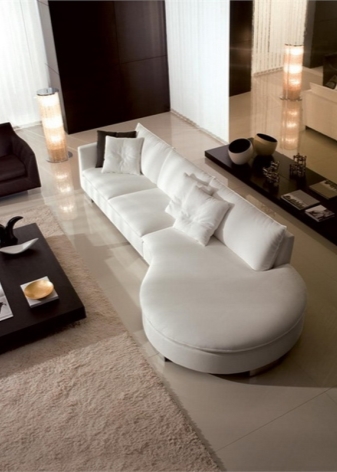 Insel Sofas können ausschließlich in der Mitte des Raumes installiert werden. Ein komplettes Bett von diesem Produkt wird nicht funktionieren, da die Breite von 120 cm nicht sehr geeignet ist für einen angenehmen Aufenthalt in der Nacht. Das Hauptunterscheidungsmerkmal solcher Modelle ist der verzierte hintere Teil des Rückens.Das Sofa sieht auf allen Seiten gut aus, wo auch immer er stand. Die Nachteile dieser Art von Produkt umfassen eine abgerundete Rückenlehne (in fast allen Modellen von Insel Sofas). Aufgrund dieser Eigenschaft ist es unmöglich, ein Sofa an die Wand zu stellen.
