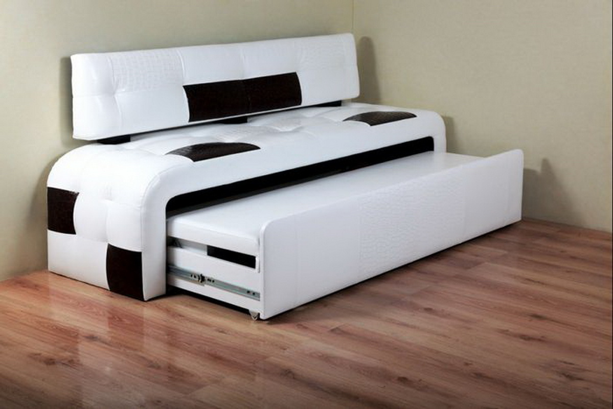 Möbel, in denen es keine Armlehnen gibt, passen perfekt ins Büro, dekorieren den Empfangsraum, werden das Highlight des Büroleiters sein. Es wird eine würdige Dekoration eines modernen Wohnzimmers sein. Klappsofa ohne Armlehnen kann im Schlafzimmer verwendet werden (aufgrund des Transformationssystems). Es werden auch Eckmodelle und Miniversionen hergestellt, die für kleine Wohnzimmer, kleine Schlafzimmer und kleine Küchen geeignet sind.Solche Produkte sehen kompakt aus, sie verstopfen eine bereits kleine Wohnung nicht.