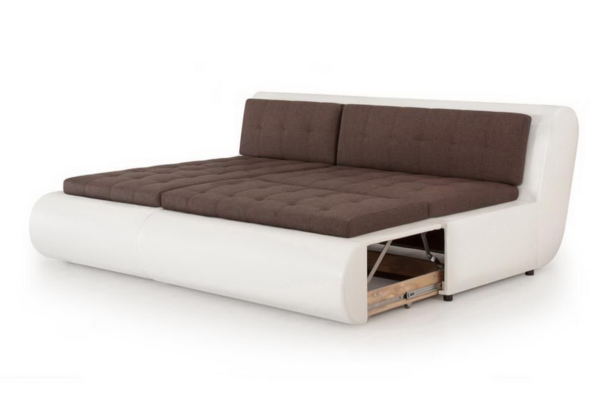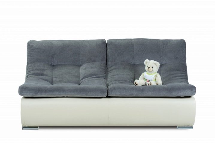 Käufer trafen zunehmend Modelle von Sofas ohne Armlehnen. Neue Zeiten sind gekommen und Polstermöbel mit massiven Seiten sind in den Hintergrund getreten. Für moderne Möbel sind Armlehnen kein unentbehrliches Element mehr, und ihr Fehlen bietet sogar gewisse Vorteile in der Bedienung. Dieses Sofa bringt frische Farben in die Einrichtung, ist ästhetisch und kompakt.Dank dieser Eigenschaft eines weichen Produkts können Sie erheblich Platz sparen.
