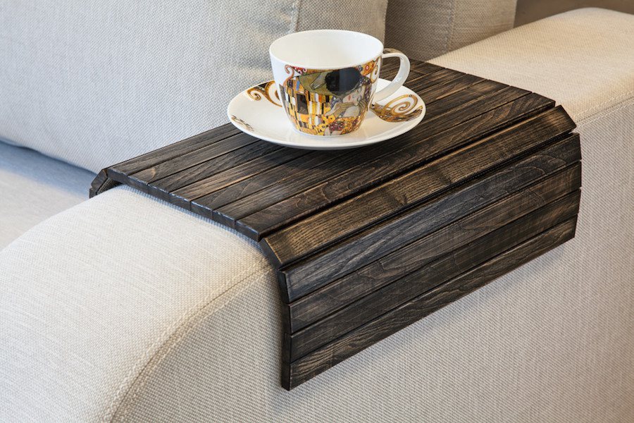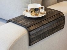 Egal ob Sie ein Sofa mit schmalen oder breiten Armlehnen gekauft haben, Sie können immer funktionelle und verschiedene Holzstücke erwerben. Sie lassen sich einfach auf die Armlehne setzen und sicher fixieren. So können Sie auf einer gemütlichen Lieblingsliege sitzen, nach einem anstrengenden Arbeitstag Ihren Lieblingsfilm anschauen und eine Tasse aromatischen Kaffee oder Tee schlürfen.Bei Bedarf können sie entfernt und entfernt werden, wodurch das ursprüngliche Aussehen auf das Sofa zurückkehrt.
