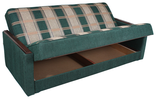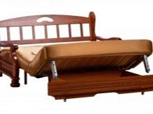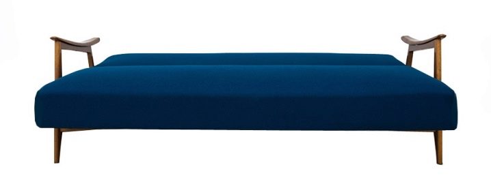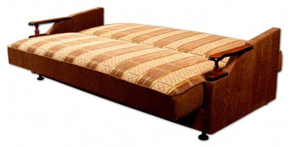 Solches Modell mit hölzernen Armlehnen unterscheidet sich in dem eigentümlichen Mechanismus der Entfaltung. Er rollt irgendwie vorwärts. Es ist bemerkenswert, dass das Sofa, wenn es ausgeklappt wird, nicht viel Platz einnimmt. Deshalb ist dieses Modell besonders für Bewohner von kleinen Wohnungen beliebt.