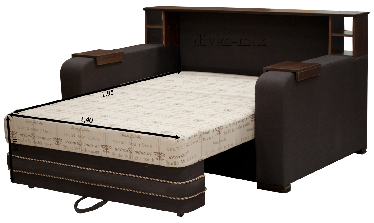 Es gibt auch eine Art von ähnlichen Möbeln - Eurobücher mit Armlehnen aus Holz. Sie zeichnen sich dadurch aus, dass sich der Sitz nach vorne bewegt. Der Rücken kann in die geformte Nische abgesenkt werden. Du bekommst also ein volles Bett.