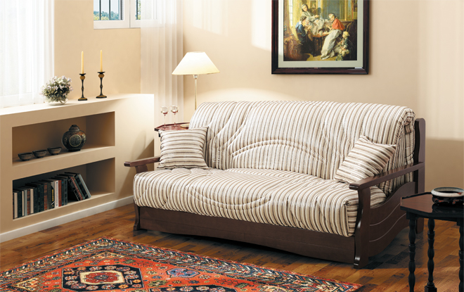 Dieses Modell mit Armlehnen aus Holz wird eine ausgezeichnete Wahl für die ganze Familie sein. Es wird viele Leute aufnehmen. Wenn Sie die Möbel auseinanderbauen, erhalten Sie ein volles Bett. Es gibt viele Variationen dieser Modelle. Sie können wählen, welche in Bezug auf Größe, Struktur und Größe zu Ihnen passt. Sie sollten sich vor dem Kauf definitiv entscheiden, wo das Sofa aufgestellt werden soll.