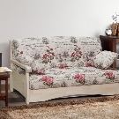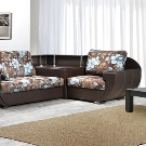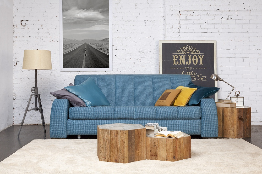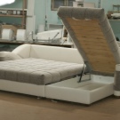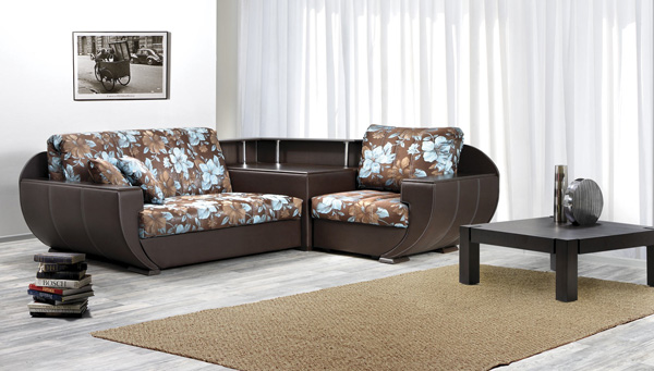 - «Lotus"- ästhetische und gemütliche Sofas mit einem kleinen Sitzbereich, die während der Verwandlung zu einem großen Doppelbett werden. Eine Besonderheit dieser Möbel sind die geschwungene Form der Armlehnen und eine interessante Farbgebung mit einem Zeitungsdruck.