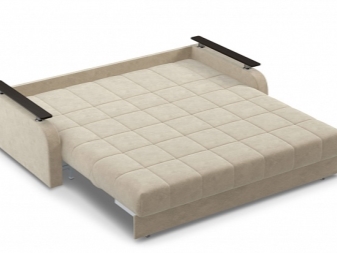 Der Hauptunterschied eines solchen Sofas ist sein Mechanismus. Es entfaltet sich nach dem Prinzip eines Akkordeons und benötigt für seine Transformation einen gewissen Raum. Der Mechanismus des Modells ist ziemlich einfach: Das Sofa kann in maximal einer halben Minute erweitert werden, was einer der Vorteile solcher Sofas ist.