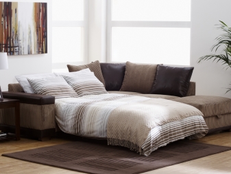 Dieses Sofa gilt als eine gute Anschaffung. Es schmückt den Raum, erlaubt allen Familienmitgliedern, sich darauf auszuruhen und ist, wenn nötig, einem vollen Doppelbett nicht unterlegen, was gute Schlafbedingungen bietet.