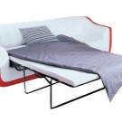 "Französisches Kinderbett". Dieses Design hat abnehmbare Kissen auf dem Sitz. Wenn ein solches Sofa entfaltet wird, wird es ein Metallrahmen mit einer bequemen Matratze sein. Es ist bemerkenswert, dass dieses Design im Vergleich zu früheren Modellen eher kurzlebig ist.