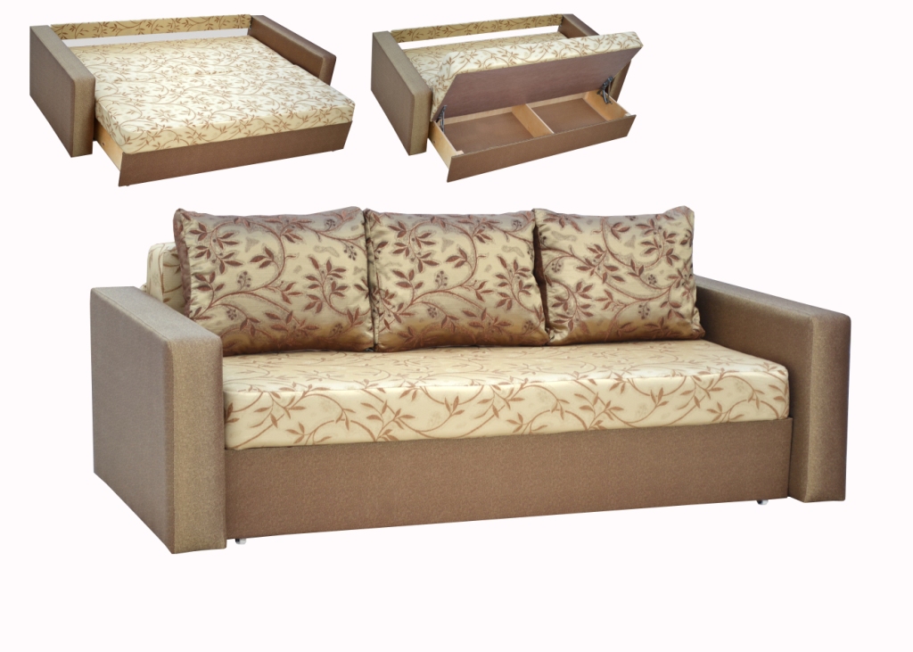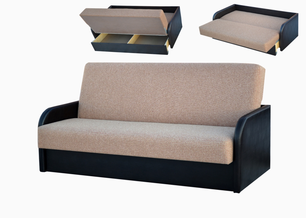 "Eurobuch". Das Sofa hat das untere Schiebeteil und auch ein mobiles Top. Mit einer leichten Bewegung können Sie den Sitz nach vorne schieben und die Rückenlehne senkt sich sanft ab. Du bekommst also ein volles Bett. Natürlich sind nicht alle diese Optionen kompakt, während Sie die beste Option für Ihr Apartment finden können.