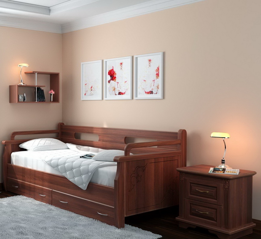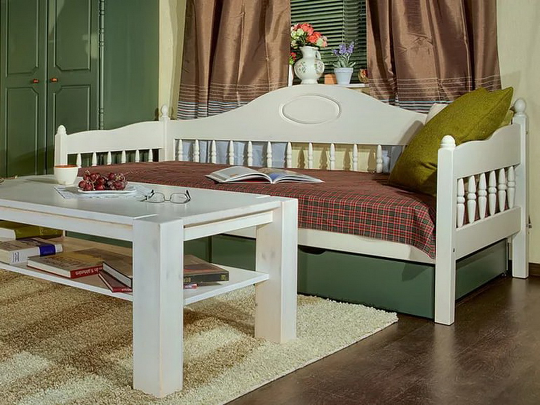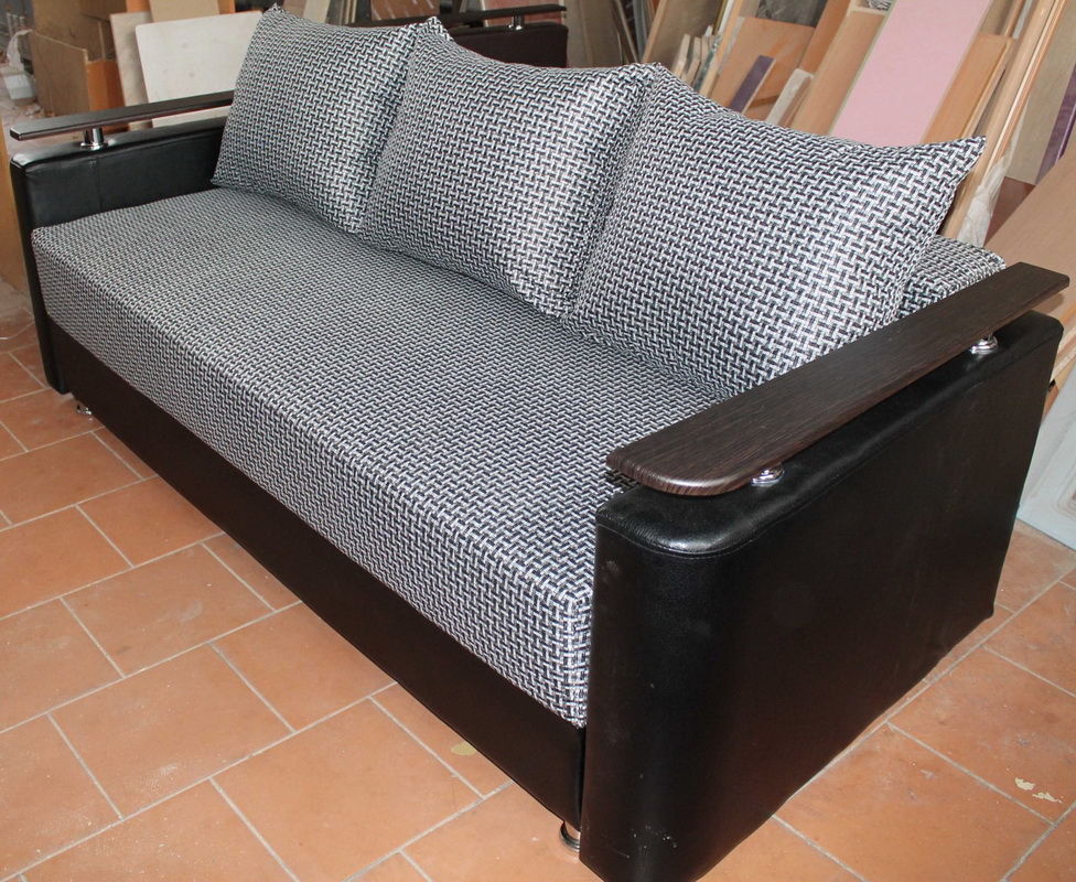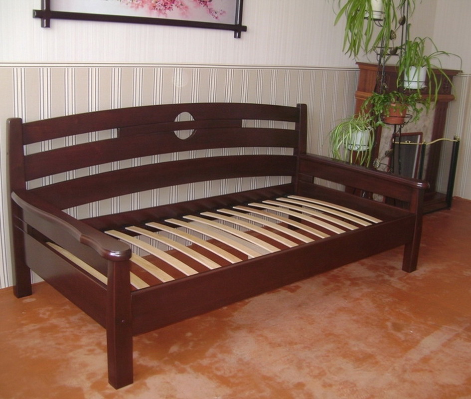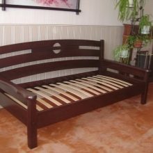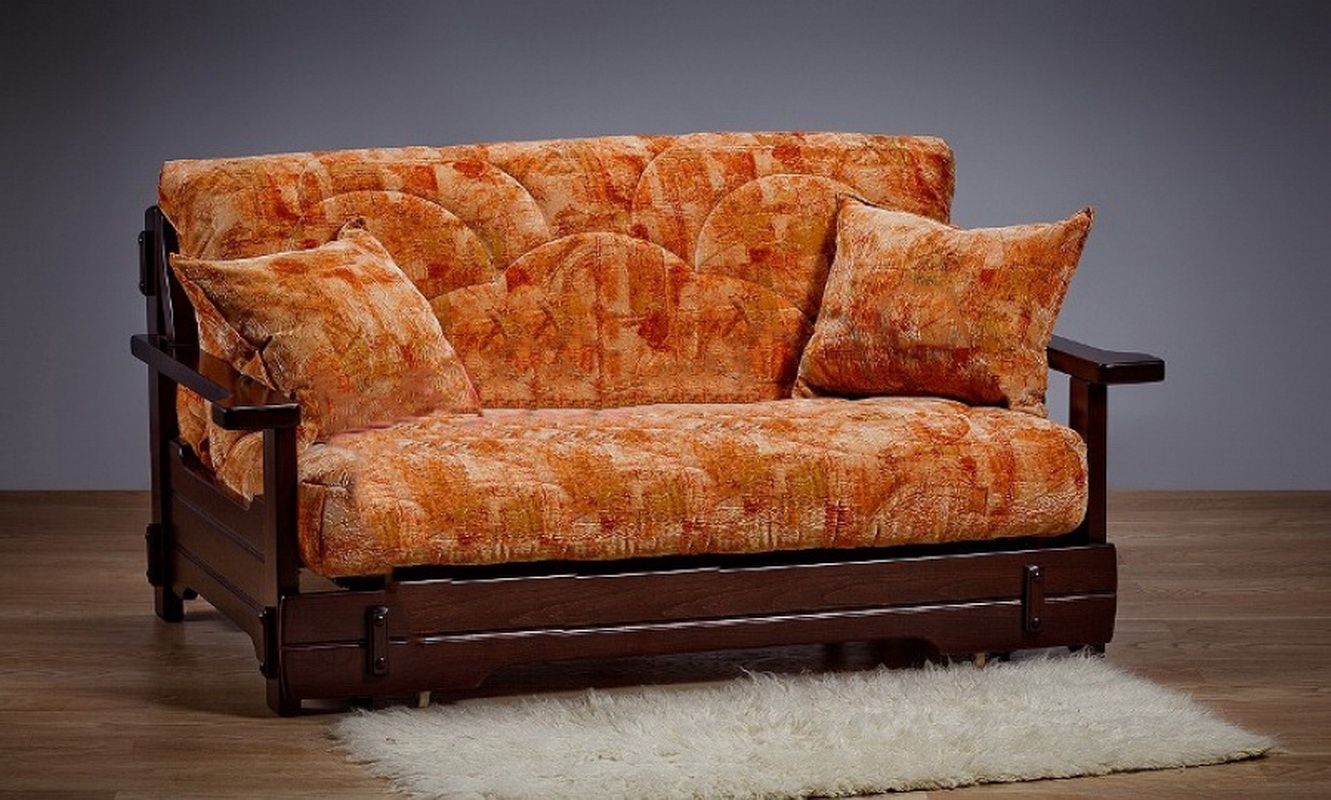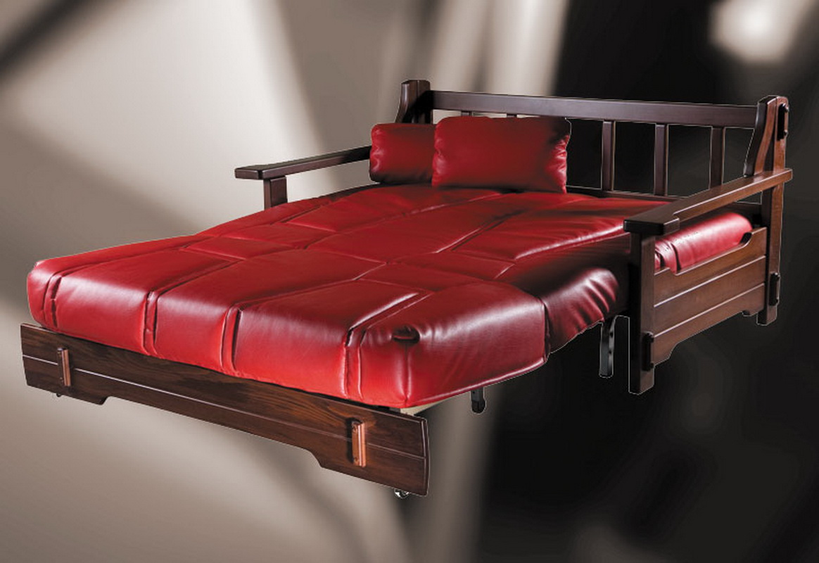 - Die Holzcouch gilt als die klassische Option.In der Regel wird diese Option bei einer Ottomane mit einem Schiebe- oder Klappmechanismus verwendet. In diesem Fall befindet sich das weiche Teil einfach in einem einfachen Holzrahmen. Ziemlich oft verwendet Kiefer, Eiche, Zeder, Walnuss. Abhängig von der Art des Holzes können die Kosten der Möbel variieren;