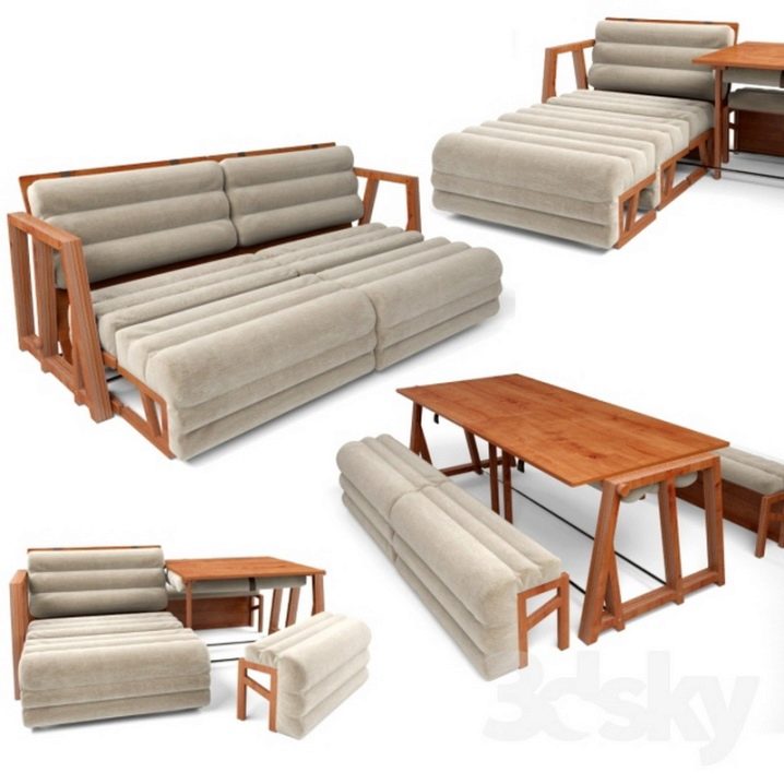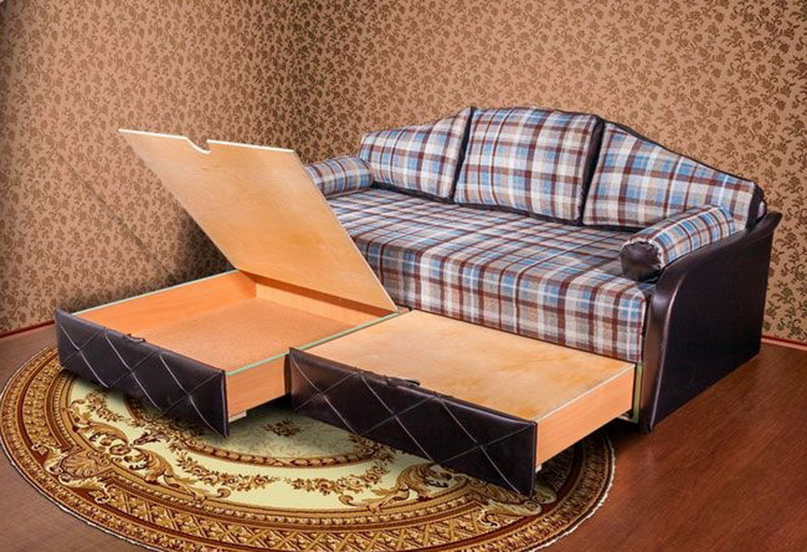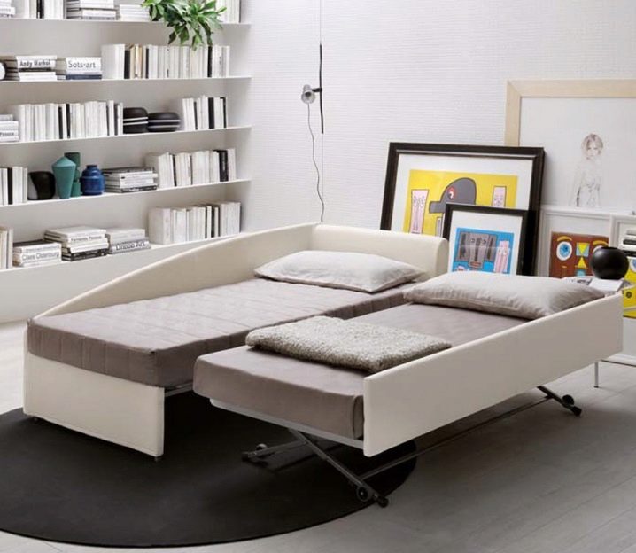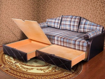 Es gibt noch andere interessante Transformationsoptionen. Zum Beispiel gibt es Modelle, die so nah wie möglich an Sofas sind, in denen sich der Ersatzliegeplatz in Form einer unteren Einheit befindet, die herausgezogen und angehoben werden kann. Es sollte daran erinnert werden, dass jede solche Funktionalität ihre Nachteile hat.Tatsache ist, dass sich viele Mechanismen, zum Beispiel durch den Typ des Eurobooks, als sehr instabil erweisen und schnell zusammenbrechen können, was Ihren Ottoman außer Betrieb nimmt.