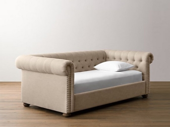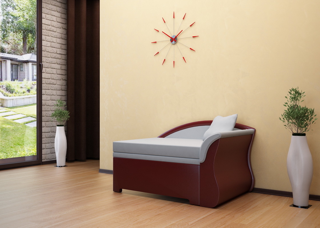 - Keine komplizierten Formen. An der Basis solcher Möbel gibt es in der Regel eine Standardliege, die je nach Art der Rückenlehne sehr bequem in der Ecke oder an der Wand aufgestellt werden kann.