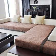 Die Lösung für dieses Problem ist nicht weniger anspruchsvoll, da qualitativ minderwertiges Material die Lebensdauer des Bezugs erheblich verkürzt und das Aussehen der Möbel ruinieren kann. Gleichzeitig sollte man den Stoff beim Nähen des Produktes selbstständig sorgfältig auswählen. Bei der Auswahl eines Materials müssen auch die Funktionen des Sofas festgelegt werden. Dies ist notwendig, da der Stoff, der ideal für ein Kinderzimmer ist, auf einem Sofa im Wohnzimmer weniger vorteilhaft aussehen wird.