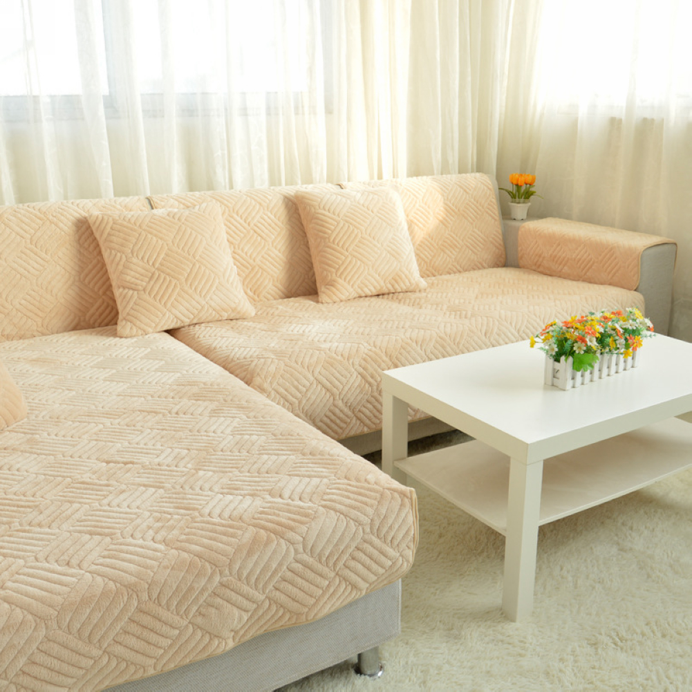 Abdeckungen dieser Art können abgedeckt werden und Möbel von beliebigen Designs schützen, sie sind bequem zu entfernen und anzuziehen. Diese Produkte sind vielseitig und sogar für Sofas mit einem Regal oder einer Bar geeignet. Verwendet für Sofas mit rechtem oder linkem Vorsprung.