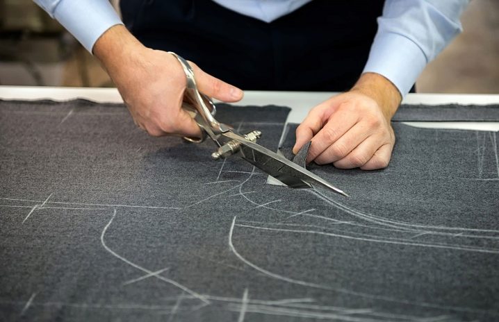 Nach all den notwendigen Messungen, die früher beschrieben wurden, ist es notwendig bügele das Material durch ein feuchtes dünnes Tuch. Wenn der ausgewählte Stoff Wolle oder Baumwolle ist, müssen Sie ihn zuerst in warmem Wasser waschen, damit sich das Material sofort setzt und das Produkt nicht unbrauchbar wird. Nach all den Vorbereitungen wird der Stoff umgedreht, oben müssen Sie die Zeichnungen auflegen und um die Kontur schneiden.Dann, 2 cm von der Hauptlinie abgehend, verbringen Sie die Sekunde und schneiden Sie den notwendigen Teil des Falles aus. Am Ende aller beschriebenen Manipulationen können Sie beginnen, das Produkt zu nähen.