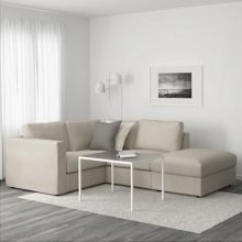 Besonders beliebt bei den Modellen der Ecksofas genießen Ikea "Wimley"Und"Vallentuna". Käufer neigen dazu, für dreifache Ecksofas zu entscheiden. Sie sind viel billiger als ihre Vier-und Fünf-Bett-Gegenstücke, nehmen Sie ein wenig Platz in der Wohnung. Der Innenraum wirkt prägnant und elegant. Die Höhe des Sofas "Vimle" mit Kissen ist 80 Zentimeter, Breite - 252 Zentimeter, Tiefe der Wagenlänge - 164 Zentimeter.