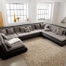 - Ecksofas in großen Größen sind Designs, die eine Sitzlänge von 2 Metern oder mehr haben. Sie können entweder faltbar oder monolithisch, standardisiert oder modular sein, oft auf individuelle Größen des Kunden zugeschnitten. Solche Modelle sind mit eingebauten Regalen, einem Tisch oder einer kleinen Bar mit der Funktion der Kühlung von Getränken ausgestattet, die sich im mittleren Modul befinden.Gleichzeitig können die Abmessungen des Bettes von 200x140 cm bis 300x200 cm variieren.