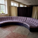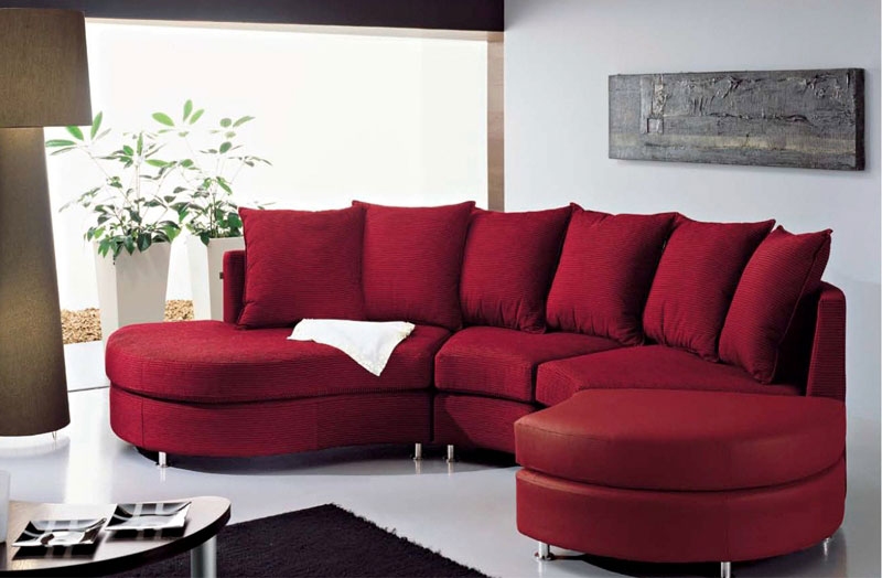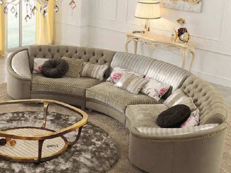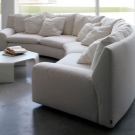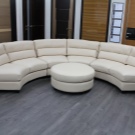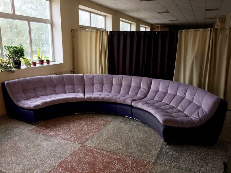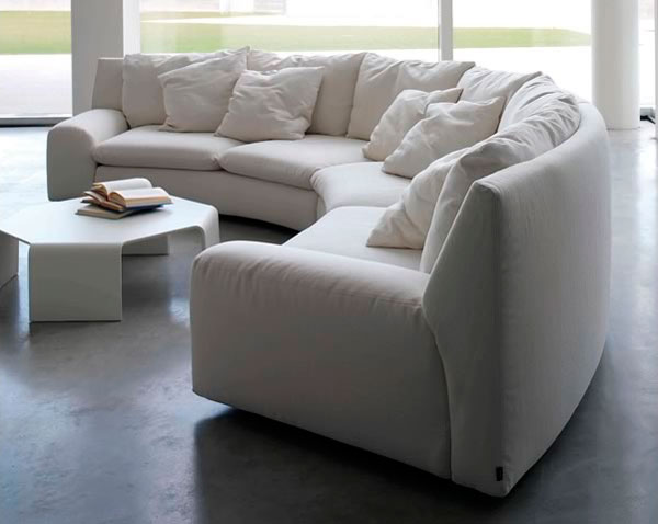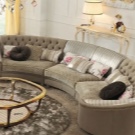 - Das monolithische Sofa ist nicht trennbar, oft hat es keine Ottomane und ist in Form eines weichen Halbkreises gestaltet.
