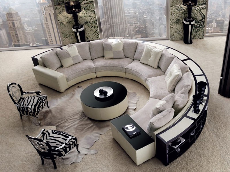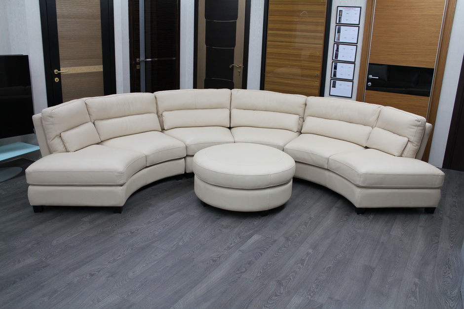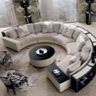Die Neuheit des Möbelmarktes sieht ungewöhnlich und stilvoll aus - Radius Ecksofas, in Form eines Halbkreises ausgeführt. Dies sind stilvolle und vorzeigbare Modelle, die am häufigsten in der modernen Design-Präsentation entworfen wurden. Bei ihrer Erstellung dominieren die Prinzipien der Loft-, Hi-Tech- und Techno-Stile, obwohl Sie eine ähnliche Neuheit in der klassischen Version bestellen können. Die Abmessungen solcher Konstruktionen hängen von der Anzahl der zusammengesetzten Segmente ab.