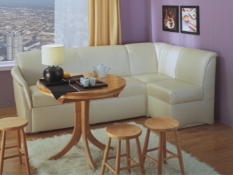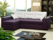 - Es gibt kleine Modelle, die Abmessungen von 170x170 cm haben. Dieses Sofa kann für die Dekoration der Küchenecke oder als Option für Polstermöbel für den Flur in Betracht gezogen werden. Solch ein kleines Design kann faltbar sein, einen Schlafplatz für eine Person bereitstellen und kann Schubladen unter dem Sitz zum Aufbewahren von Küchengeräten oder Haushaltskleinigkeiten haben. In der Regel haben diese Sofas einen universellen Winkel, der bei der Montage entweder nach links oder nach rechts nach dem Wunsch des Käufers montiert werden kann.