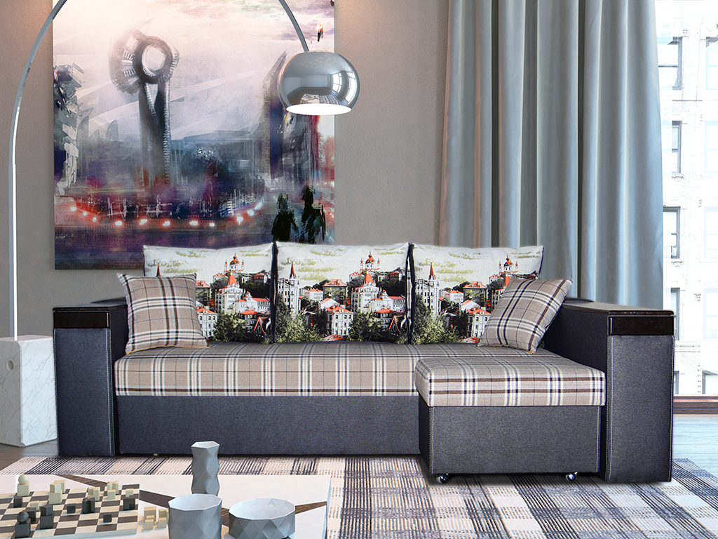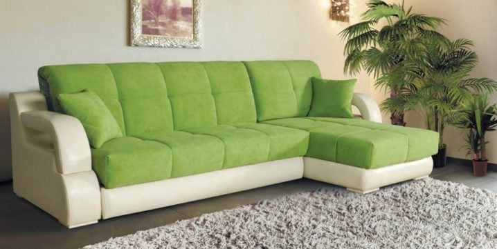 Das Ecksofa in seinem Design kombiniert, was sonst zwei getrennte Möbelstücke wären - ein gerades Sofa und ein Sessel. Darüber hinaus nutzen die Sofas dieser Konfiguration den Raum aufgrund ihrer Lage in den sogenannten "Blindzonen" des Raumes, wie die Ecken sonst genannt werden, wirtschaftlich.