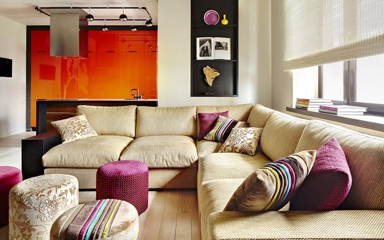 Ihr neues Sofa wird zum Mittelpunkt des Wohnraums, daher ist es am besten, genau das zu kaufen, das zum Raumdekor passt, oder mehrere Accessoires hinzuzufügen, um den Kauf an das Gesamtfarbschema anzupassen. Wenn es Bedenken hinsichtlich des Fehlers bei der Auswahl der Farben gibt, die zum Innenausbau passen, können Sie neutrale Farben von Beige- und Cremetönen mit großen weichen Kissen wählen, um eine gemütliche Atmosphäre zu schaffen.In dem Fall, wenn der Wunsch besteht, den Raum in einem modernen Stil zu gestalten, sowie einen Fokus im Raum zu schaffen Es lohnt sich, dunklere Polsterfarben zu wählen: schwarz, grau und braun.