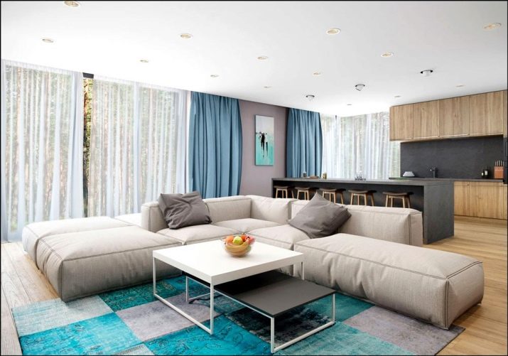Überall dort, wo das Ecksofa installiert wird, sollten Sie sich vor allem daran erinnern, dass Sie zur Erleichterung der Bewegung in der Nähe einen Freiraum von etwa einem Meter lassen sollten.