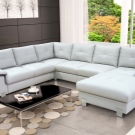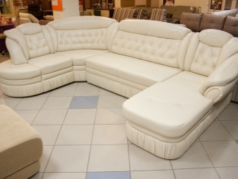- Monochrome Varianten sehen interessant aus. Weißes Kunstledersofa ist fast universell für die meisten Innenräume in einem modernen Stil. Es wirkt teuer, stilvoll und dank der Besonderheiten der Beschichtung bleibt es lange in perfektem Zustand.
