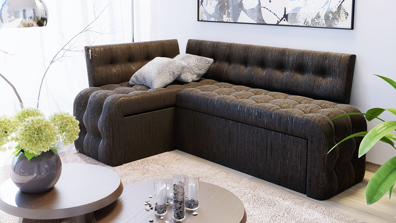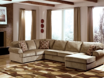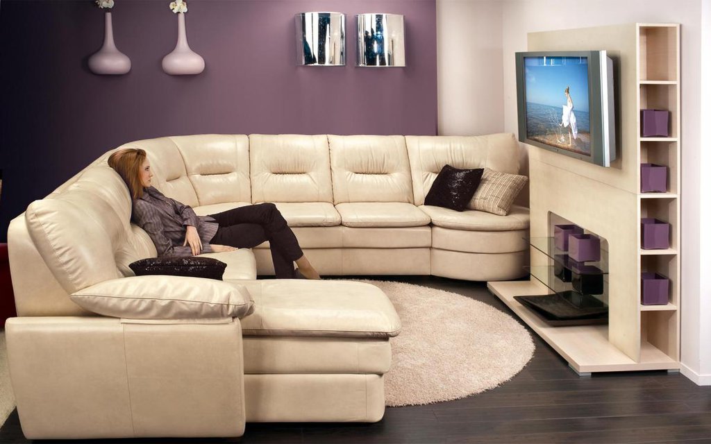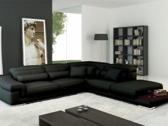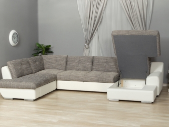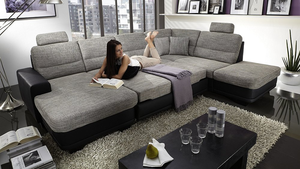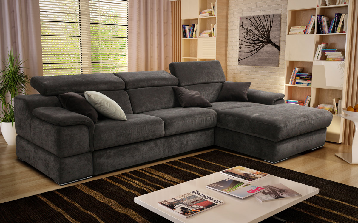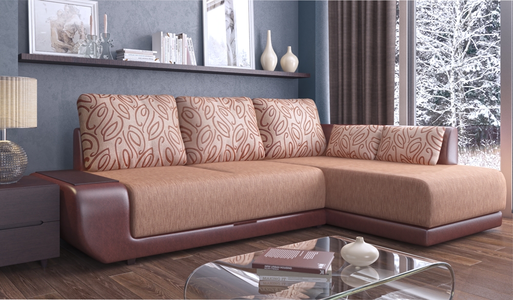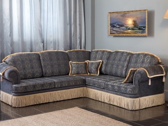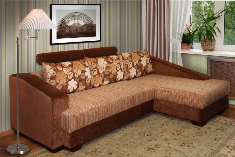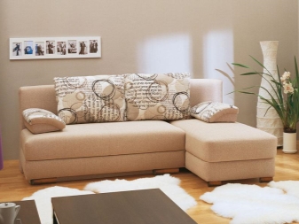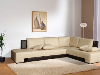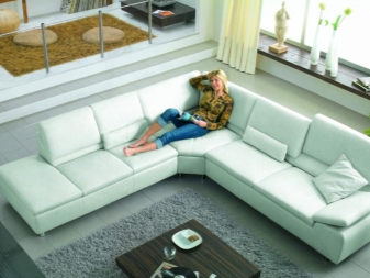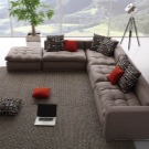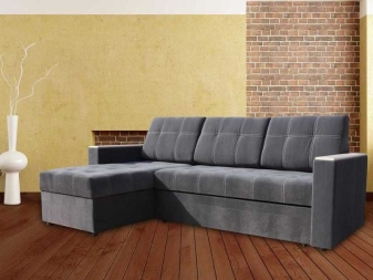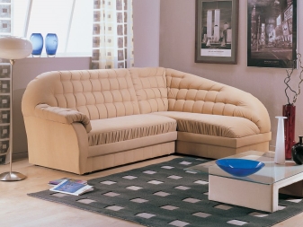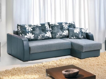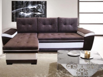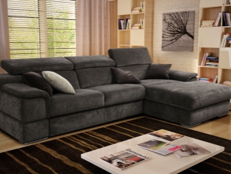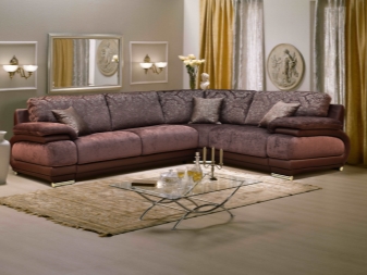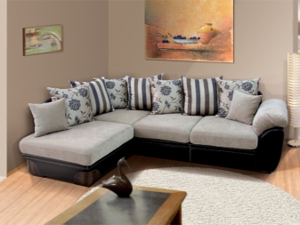 Das Ecksofa unterscheidet sich in der Tatsache, dass es bequemer ist, es im Raum zu haben. Es kann die linke oder rechte Ecke des Raumes einnehmen (der kleinere Teil der Konstruktion wird in der Regel hinzugefügt und von beiden Seiten benutzt, wenn gewünscht), harmonisch an einem willkürlich gewählten Ort angeordnet, den Raum in funktionale Zonen unterteilen.