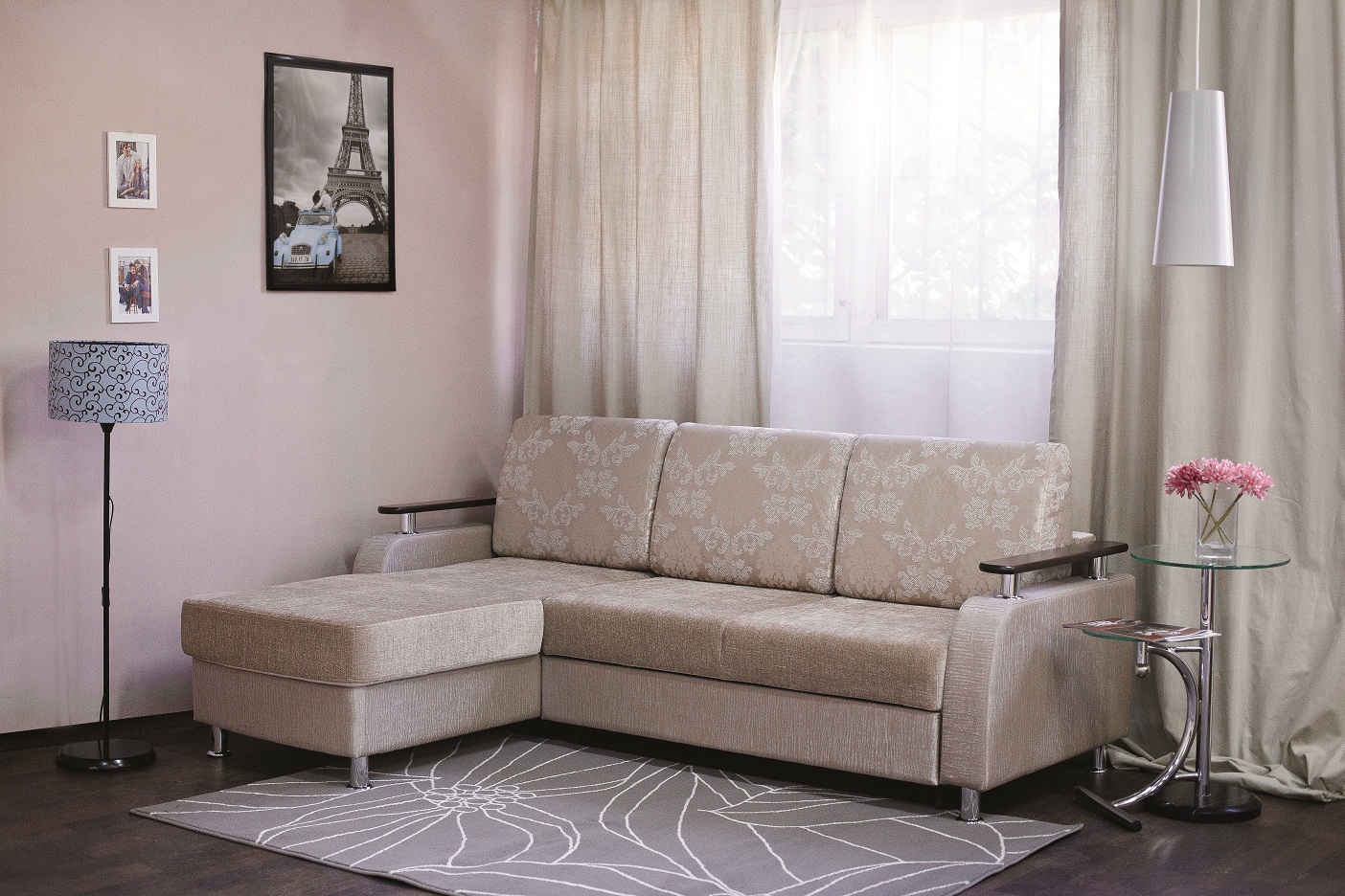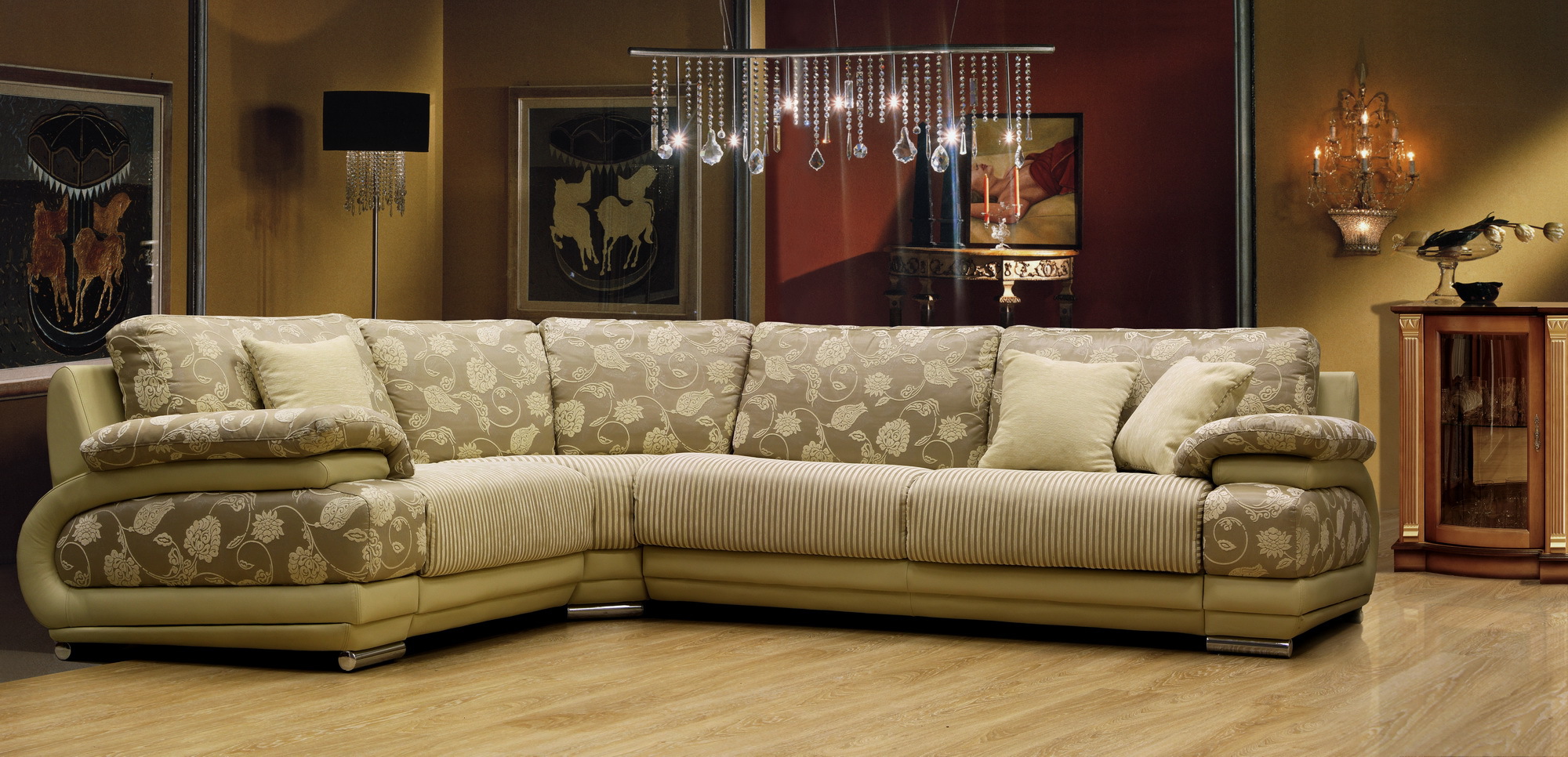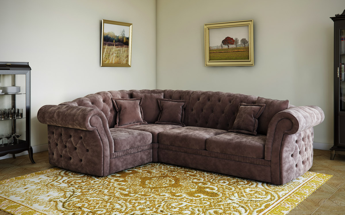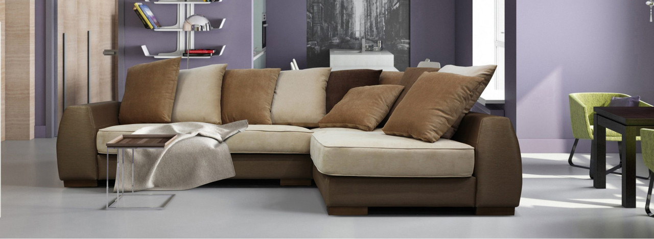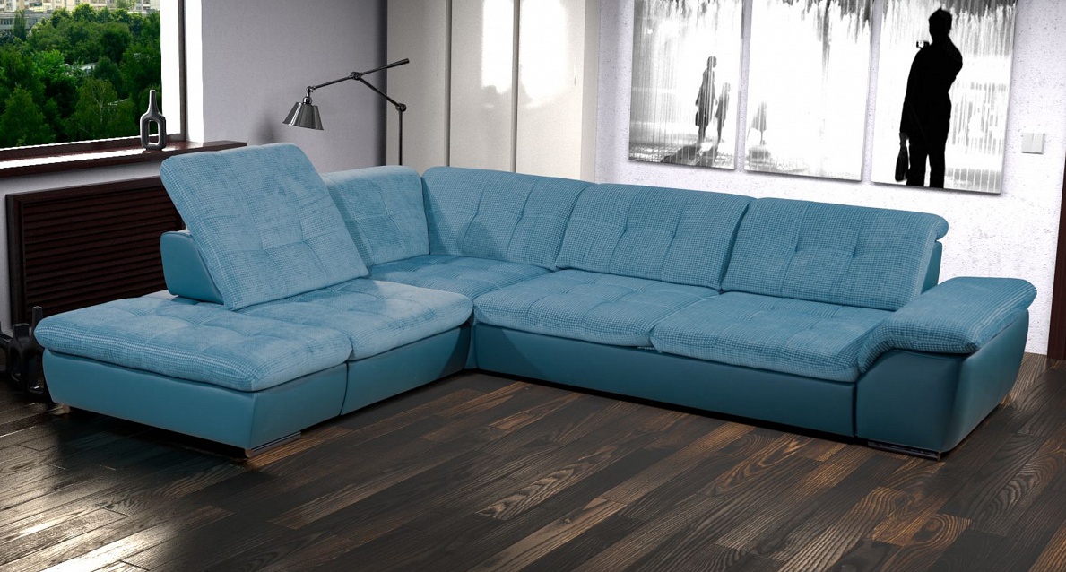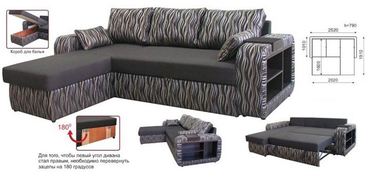 Das Ecksofa unterscheidet sich in der Tatsache, dass es bequemer ist, es im Raum zu haben. Es kann die linke oder rechte Ecke des Raumes einnehmen (der kleinere Teil der Konstruktion wird in der Regel hinzugefügt und von beiden Seiten benutzt, wenn gewünscht), harmonisch an einem willkürlich gewählten Ort angeordnet, den Raum in funktionale Zonen unterteilen.