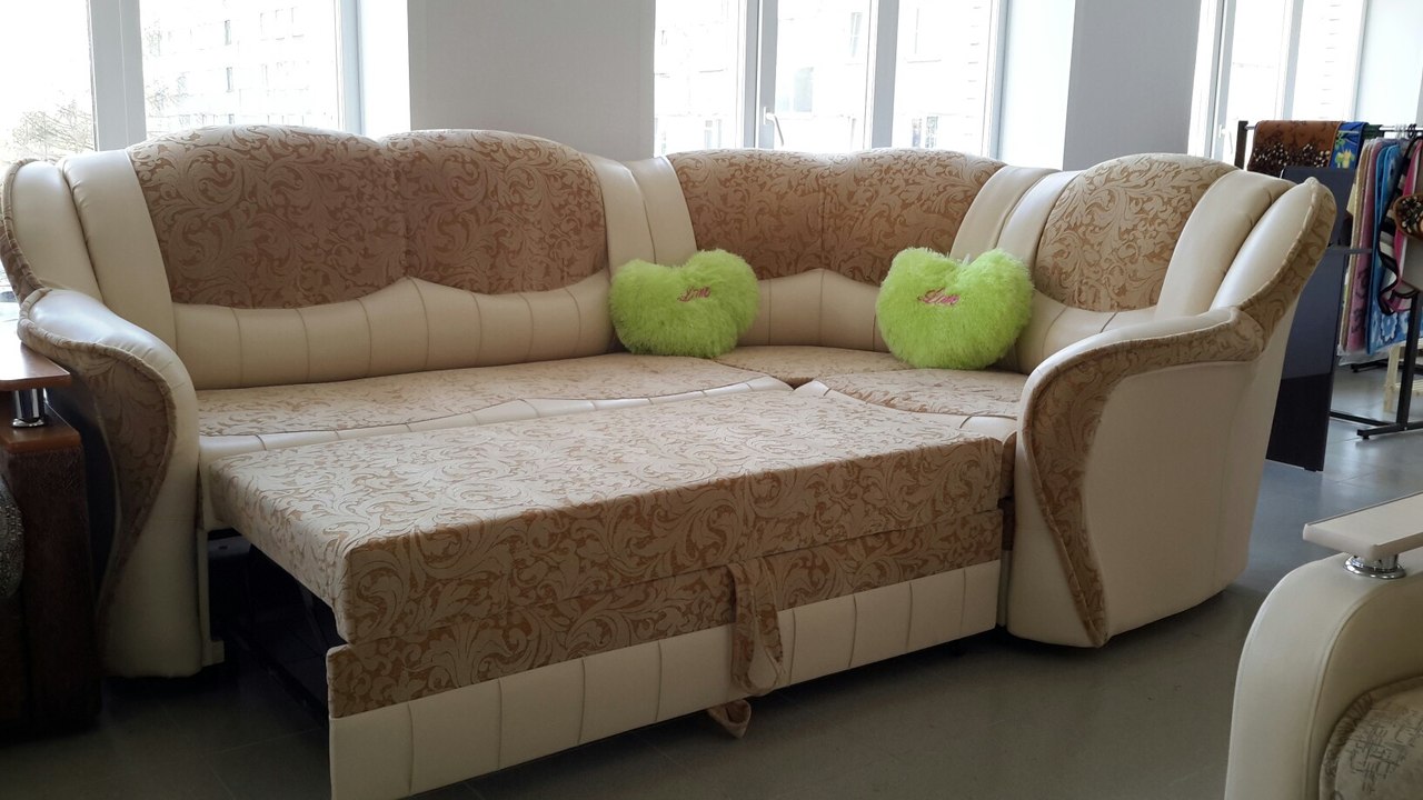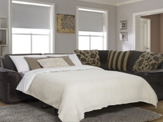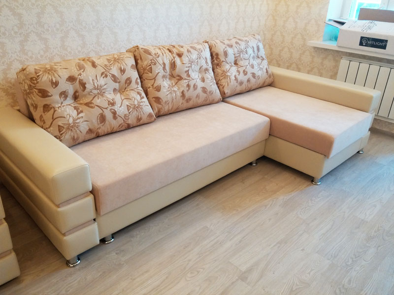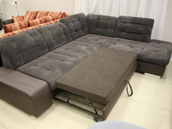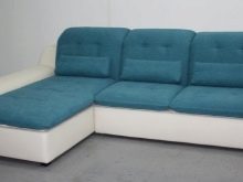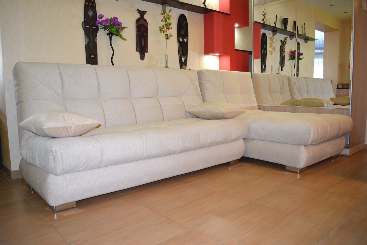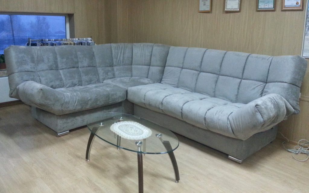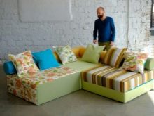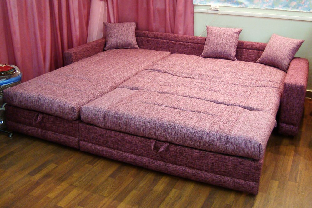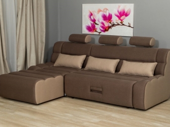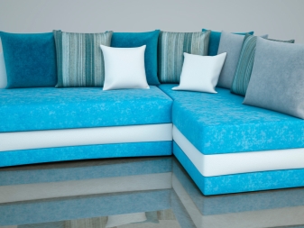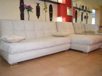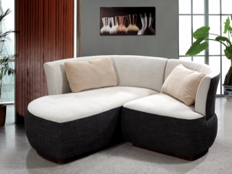 Der Vorteil eines eckigen Sofas im Vergleich zu diesem Modell ist, dass es mit seiner Mobilität eine festere Konstruktion bleibt, auch wenn es aus mehr als zwei Teilen besteht. Es ist bequem, vor dem Schlafengehen zu liegen, ohne Angst zu haben, dass die Teile sich teilen und unbequeme Lücken zwischen ihnen entstehen.