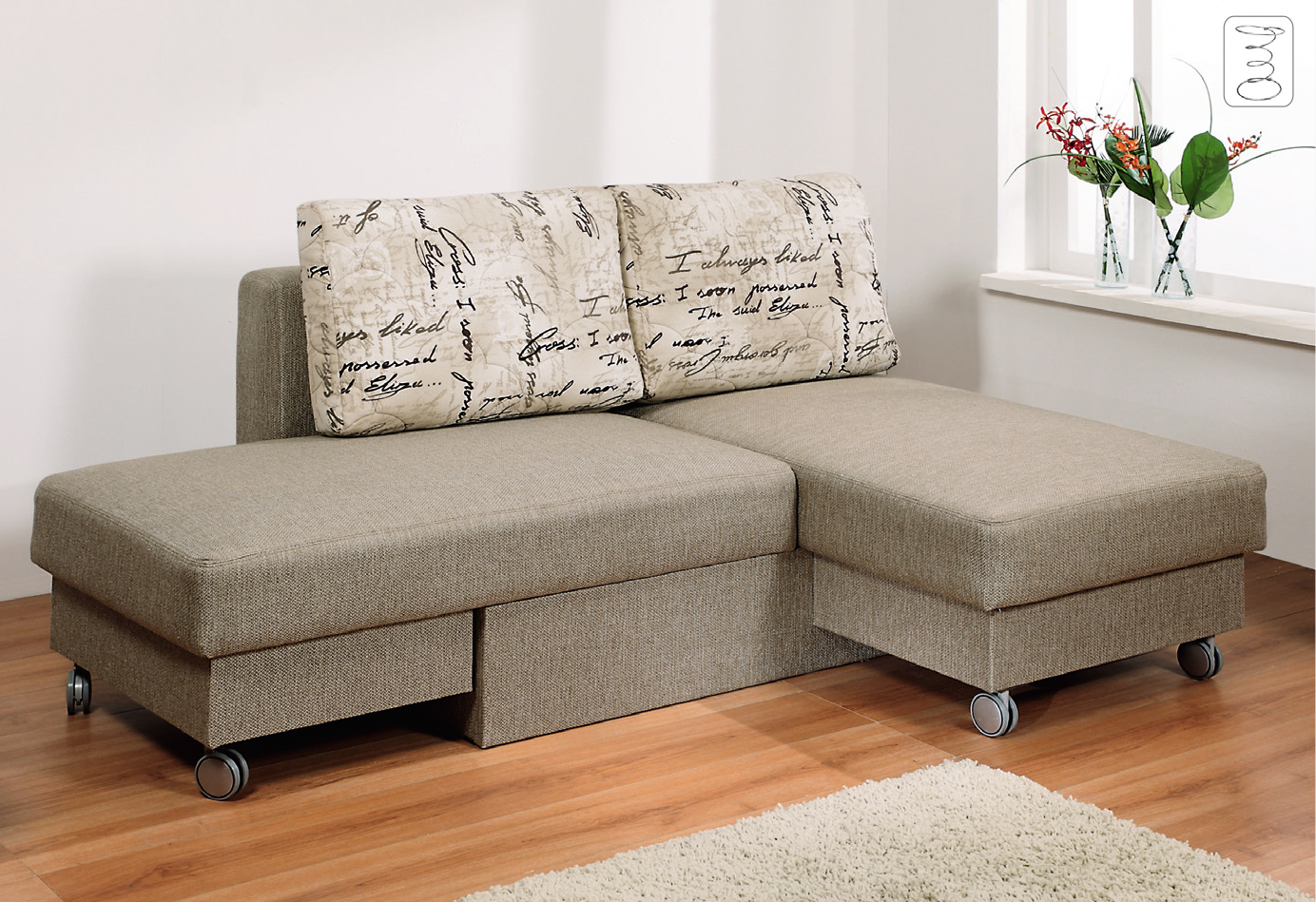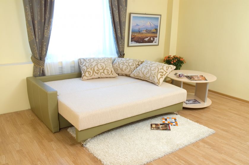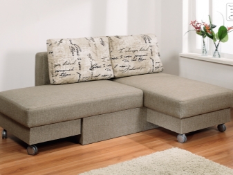 Kleine Sofas werden hauptsächlich durch Falt- und Ausziehmechanismen repräsentiert. Sie sind in einem Einzelbett mit einer Breite von einem Bett von 70 bis 90 und einer Länge von 180 bis 200 Zentimeter ausgelegt.