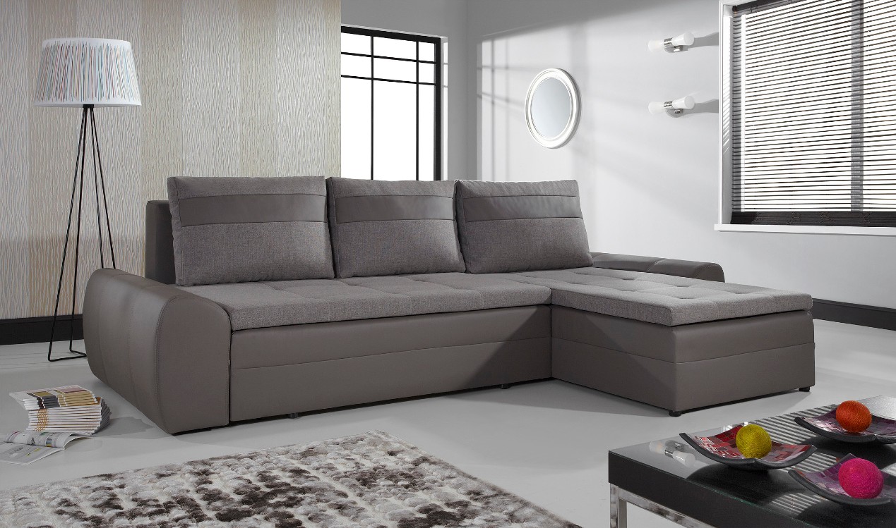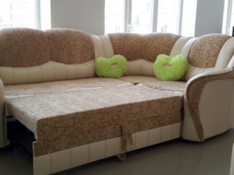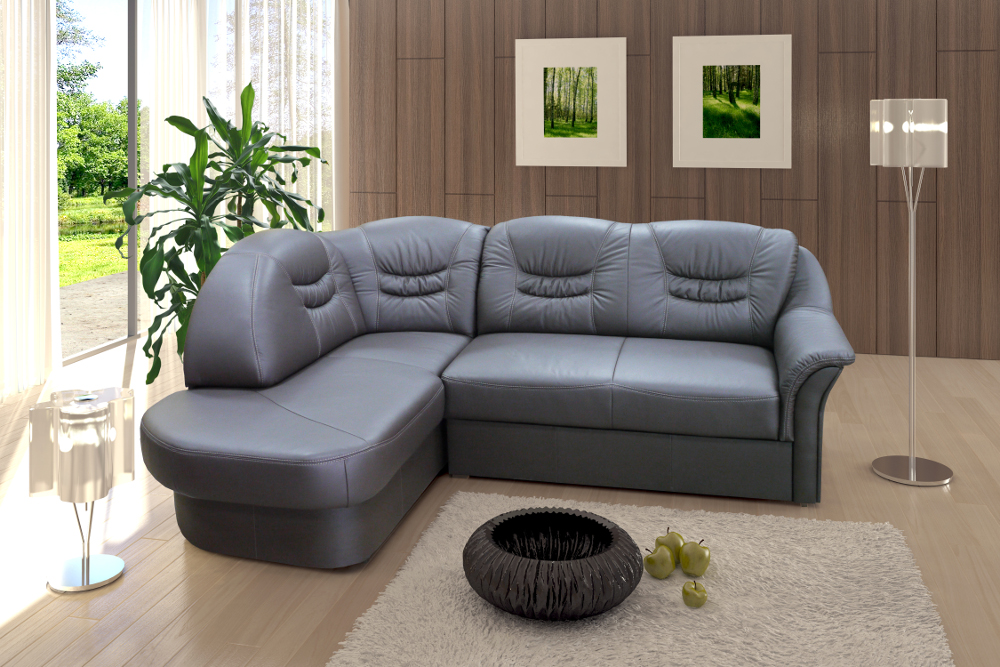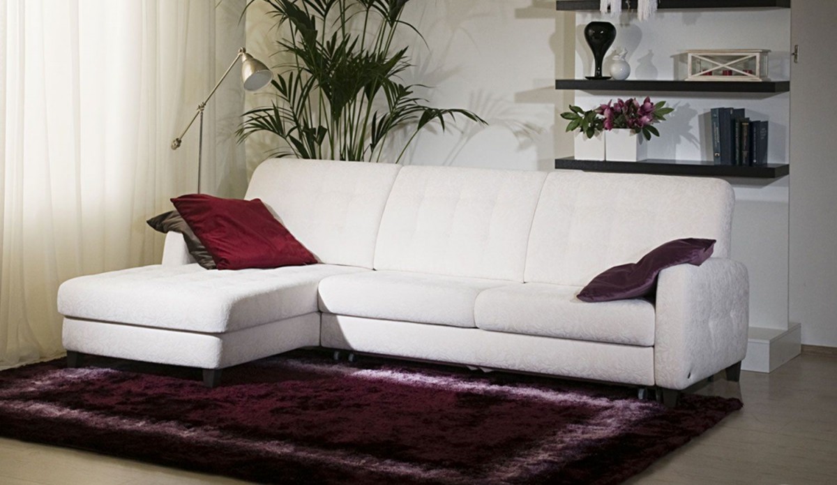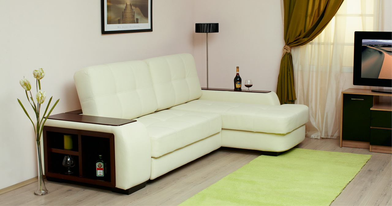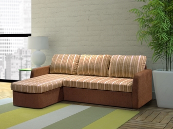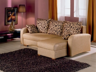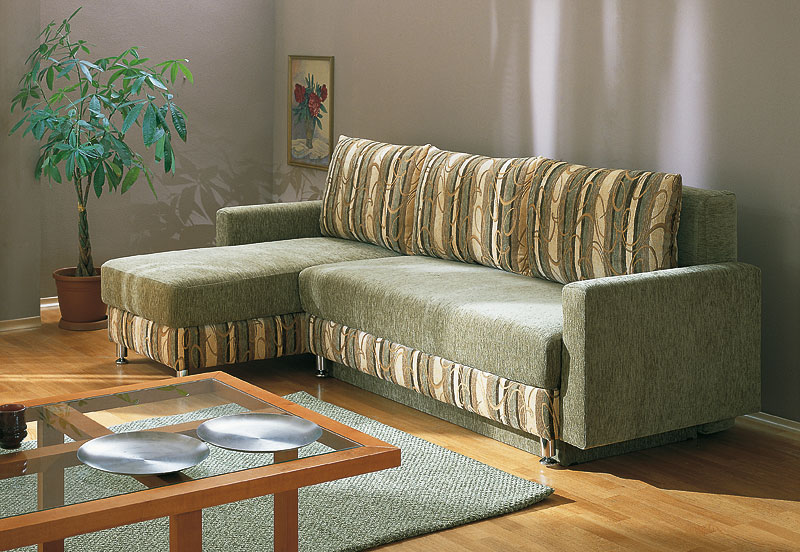 Ecksofas mit einem Liegeplatz - spart in einem Quadrat. Tagsüber ist es kompakt gefaltet und nimmt nicht viel Platz ein, aber nachts streckt es das Bett in geräumige Größen, so dass die Notwendigkeit, ein Sofa und ein Bett getrennt zu kaufen, entfällt. Darüber hinaus ist das Ecksofa aufgrund der Variabilität von Formen und Ausführungen ein Element der Gestaltung von Wohnraum.