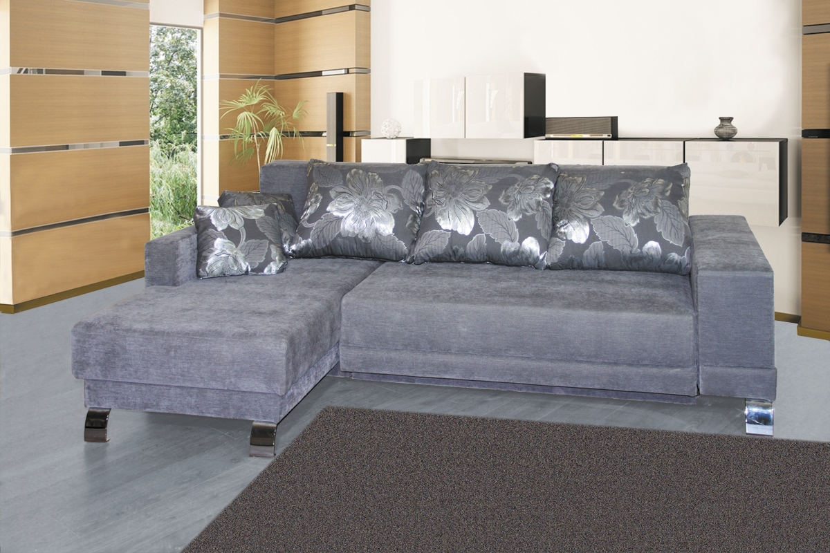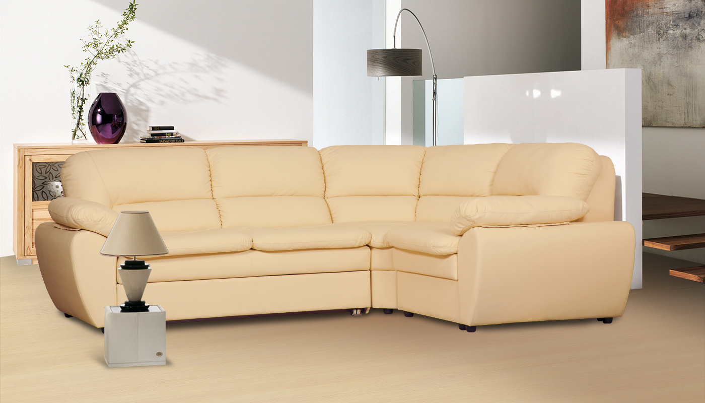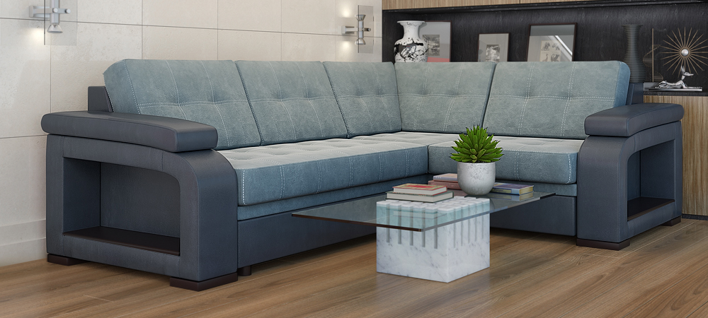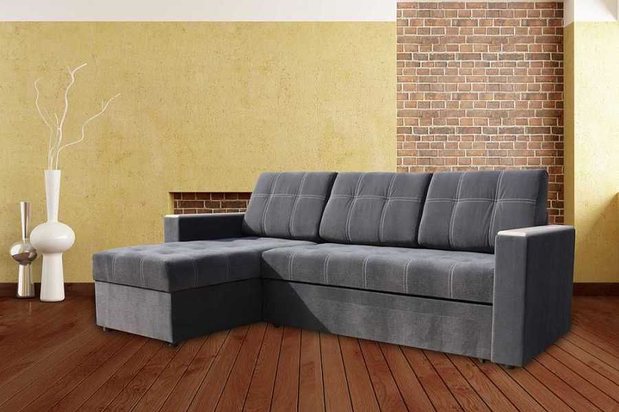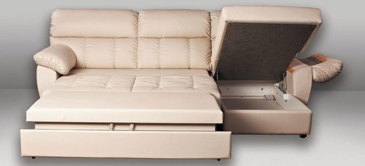 Ecksofas mit einem Liegeplatz - spart in einem Quadrat. Tagsüber ist es kompakt gefaltet und nimmt nicht viel Platz ein, aber nachts streckt es das Bett in geräumige Größen, so dass die Notwendigkeit, ein Sofa und ein Bett getrennt zu kaufen, entfällt. Darüber hinaus ist das Ecksofa aufgrund der Variabilität von Formen und Ausführungen ein Element der Gestaltung von Wohnraum.